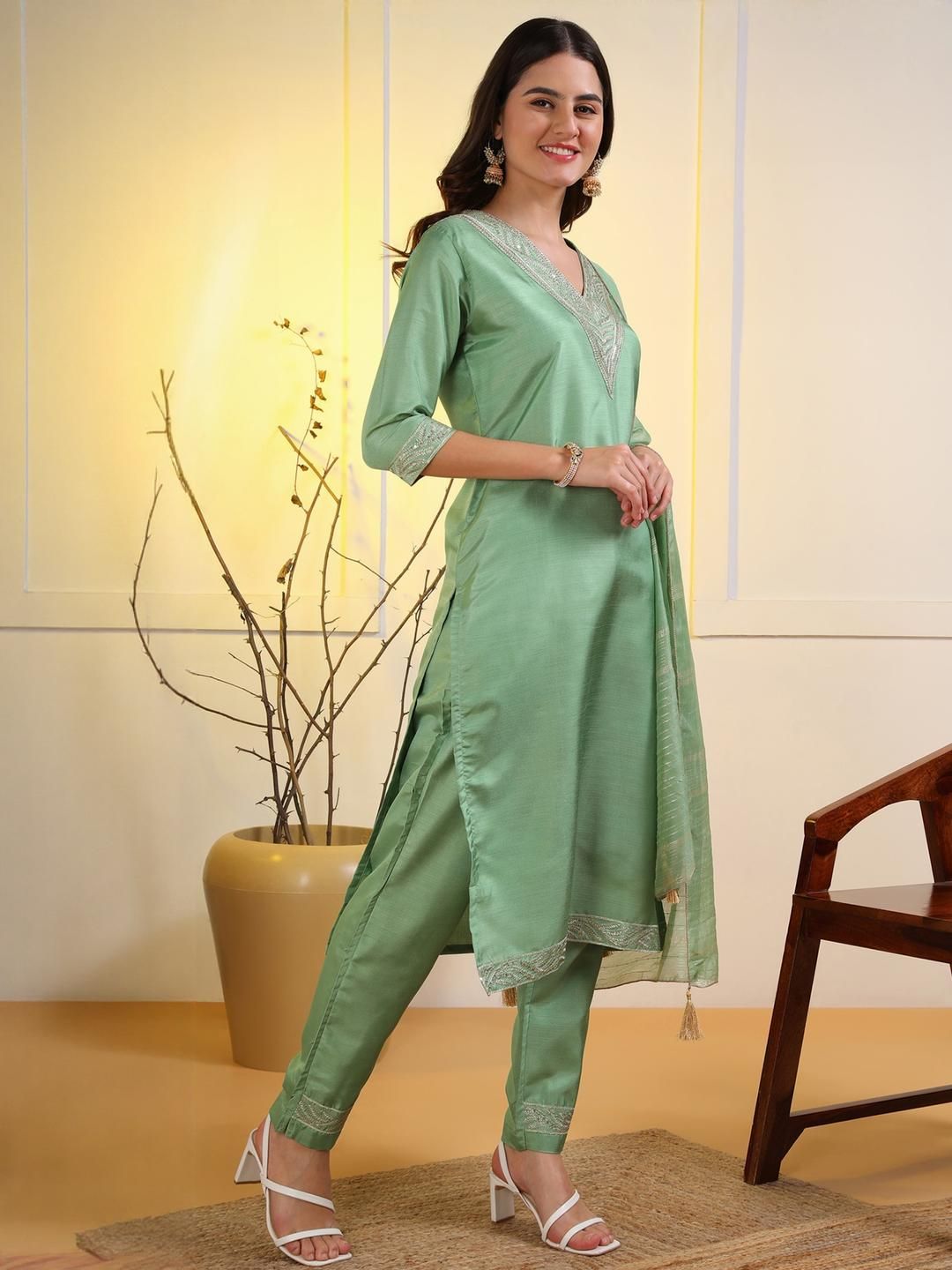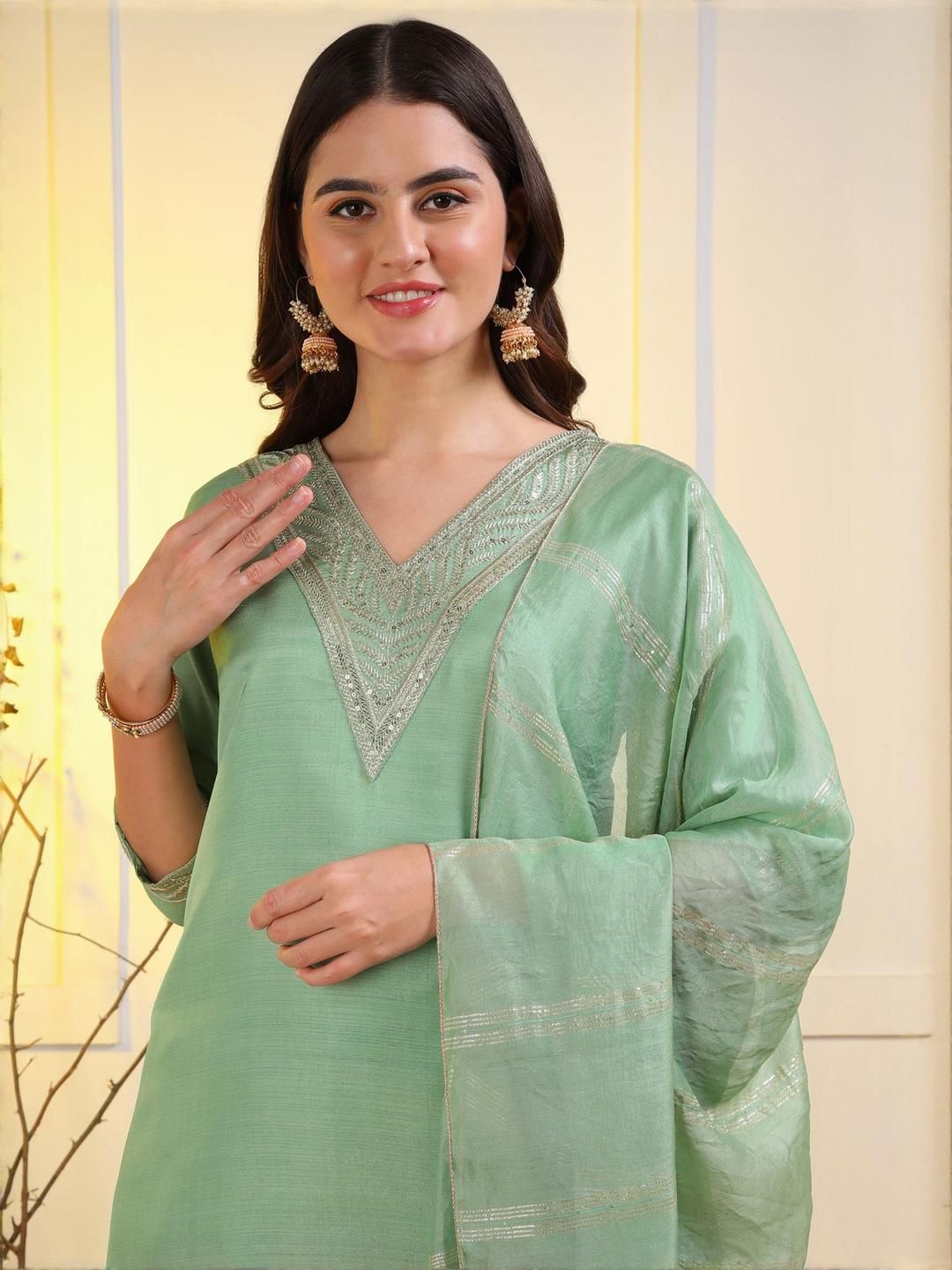 NEW ETHNIC 4 YOU Women Silk Blend Embroidered Kurta Sets