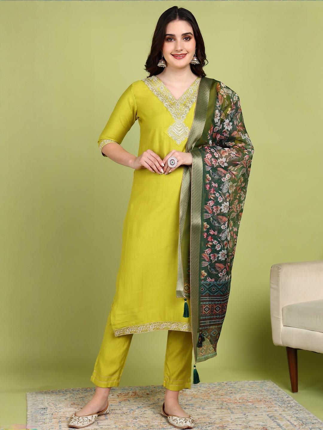 NEW ETHNIC 4 YOU Women Silk Blend Embroidered Kurta Sets