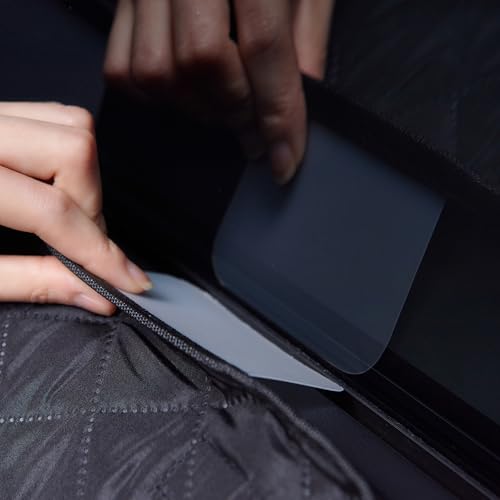 The car door protector cover is made of 1680D polyester fabric, keep the car door clean and safe and protect your car door from scratches when you and your pet are traveling. Includes 2 vehicle door protectors, one for the left and one for the right door, dimensions 26W x 21H inches, suitable for most cars, trucks and SUVs. Using three plastic tabs that are inserted between the window and the door frame, you can also use the strong adhesive tape to install the car door cover.
