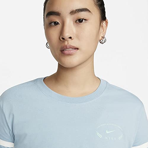 Nike Women's Polyester Regular Fit T-Shirt (DV4143-494_Worn Blue/Mint Foam/SAIL/Sesame XL)