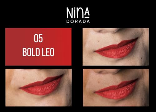 nina dorada Bold Leo Matte Finish French Red Liquid Lipstick | Long Lasting, Waterproof | Smudgeproof Formula with Shea Butter & Jojoba Oil | Cruelty Free and Vegan