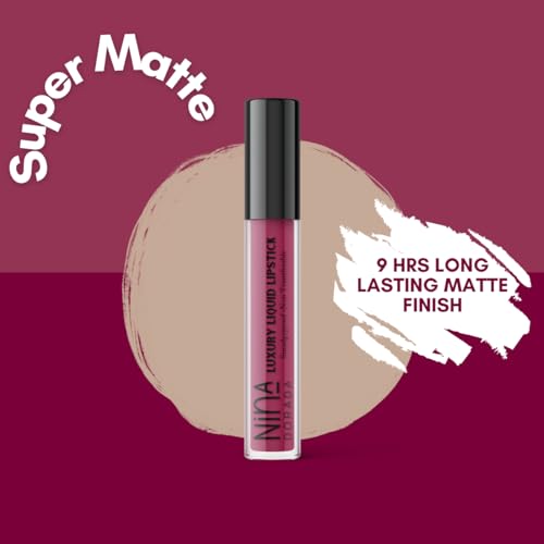 nina dorada Earthy Touch Matte Finish Dark Pink Liquid Lipstick | Long Lasting, Waterproof | Smudgeproof Formula with Shea Butter & Jojoba Oil for | Cruelty Free and Vegan