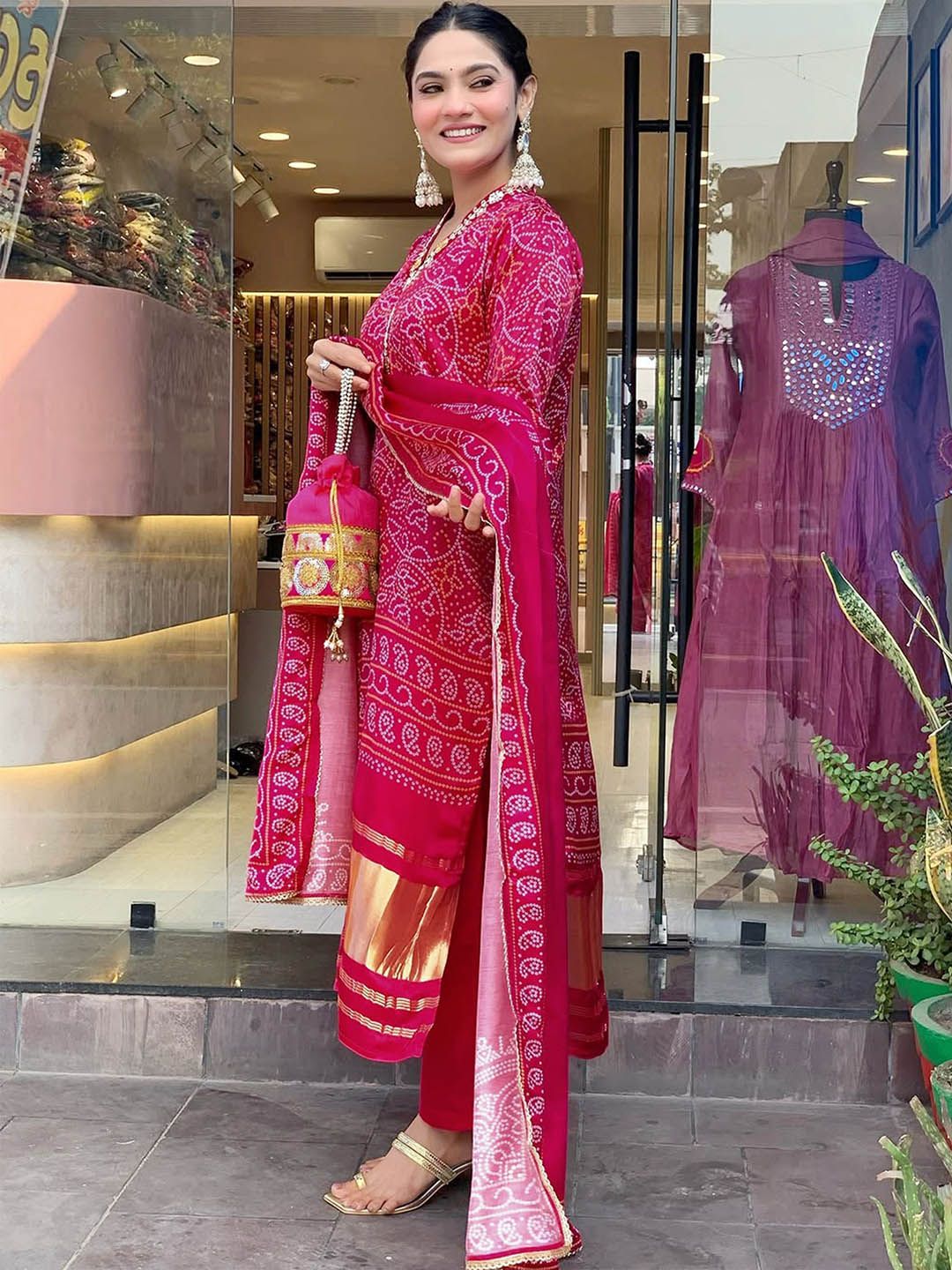 Buy this stylish NIZA FASHION Bandhani Printed V Neck A Line Kurta With Trousers & Dupatta at Marincart Nepal. This product offers great quality and value. Perfect for those looking for the latest trends in fashion. Get yours now at unbeatable prices.