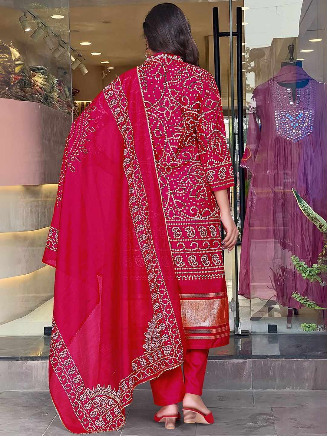NIZA FASHION Bandhani Printed V Neck A Line Kurta With Trousers & Dupatta