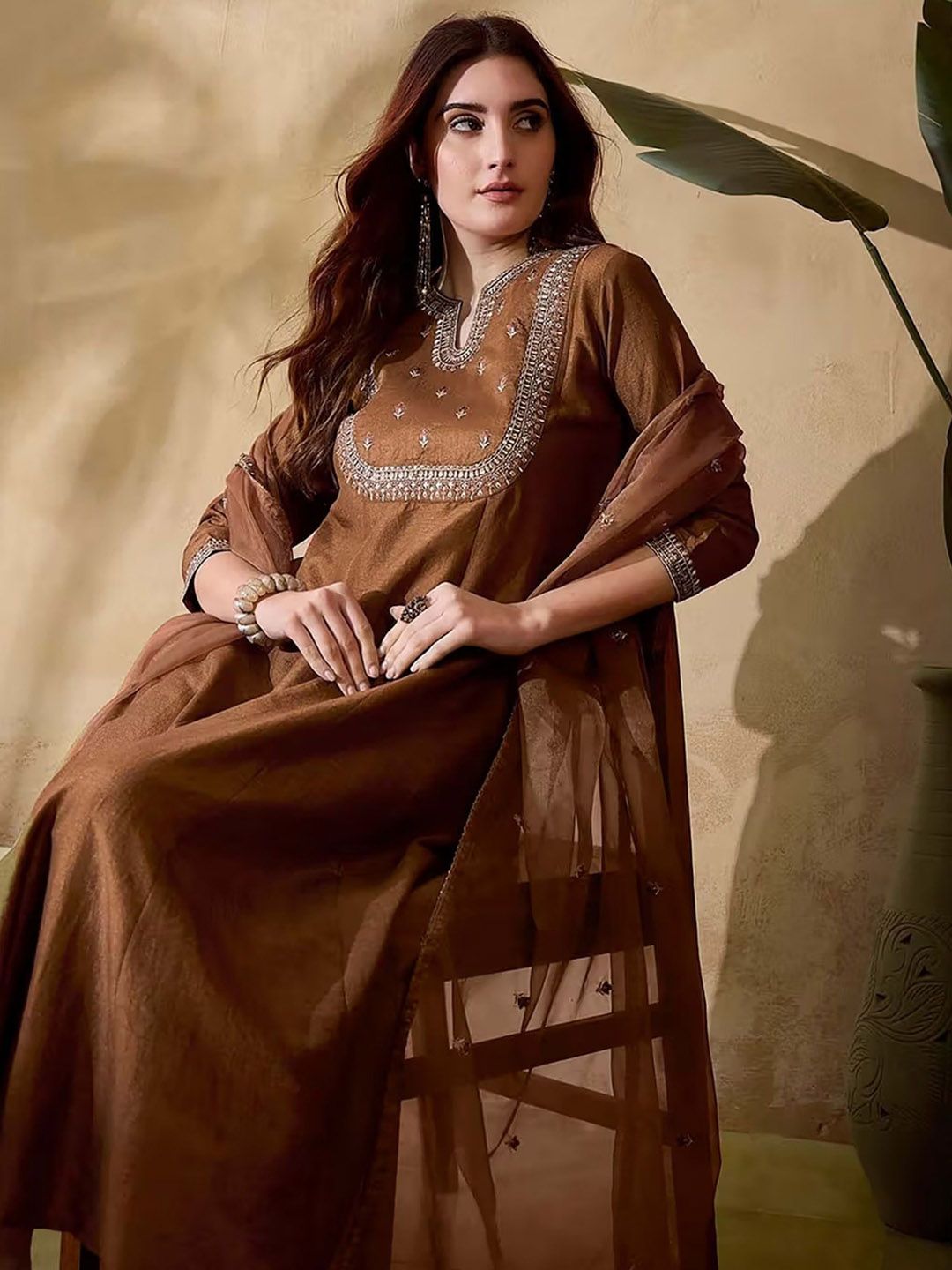 NIZA FASHION Women Ethnic Motifs Embroidered Regular Kurta with Trousers & With Dupatta