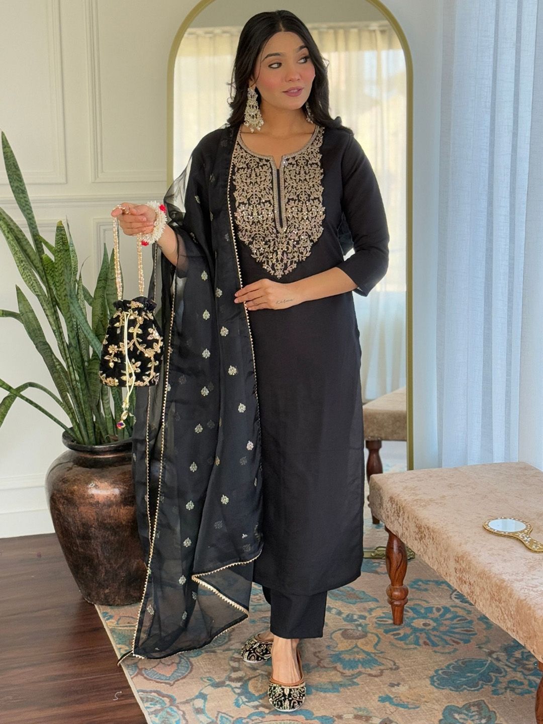NIZA FASHION Women Floral Embroidered Kurta with Trousers & With Dupatta Kurta Sets
