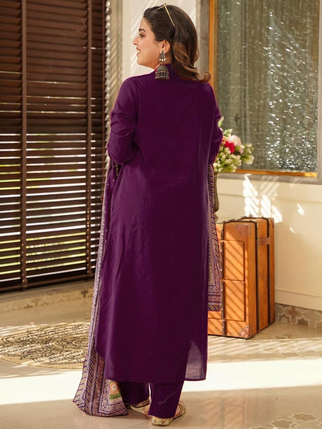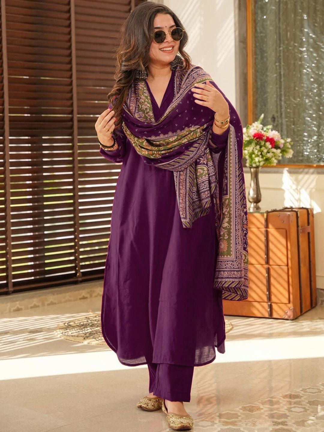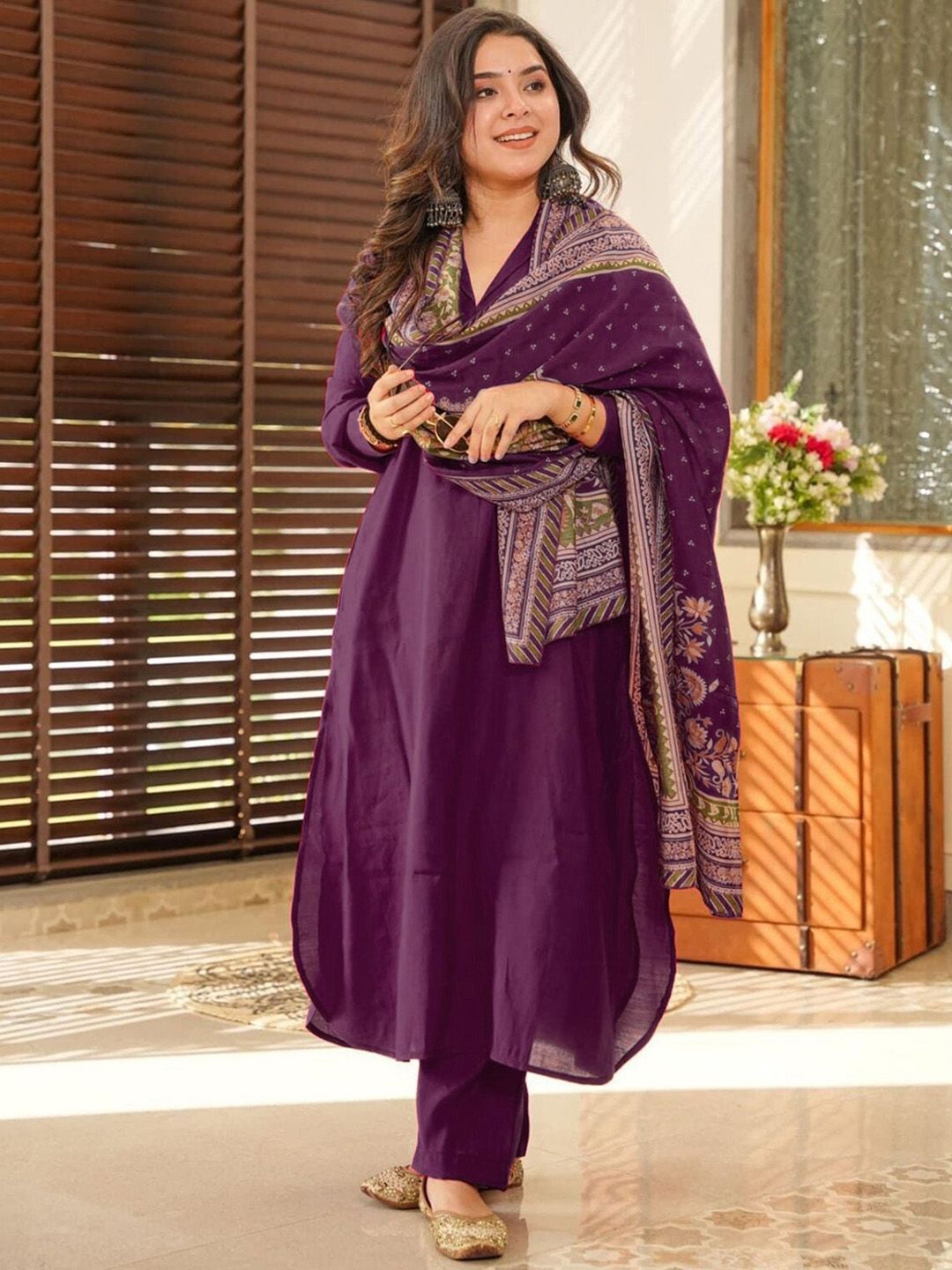 NIZA FASHION Women Solid Regular Pure Cotton Kurta Set with Dupatta