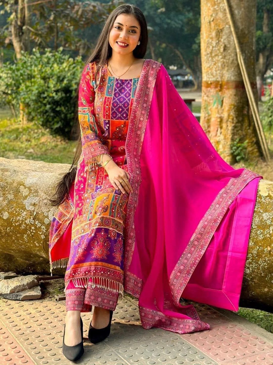 Buy this stylish NKV Ethnic Motifs Printed Round Neck Mirror Work Kurta With Trousers & Dupatta at Marincart Nepal. This product offers great quality and value. Perfect for those looking for the latest trends in fashion. Get yours now at unbeatable prices.