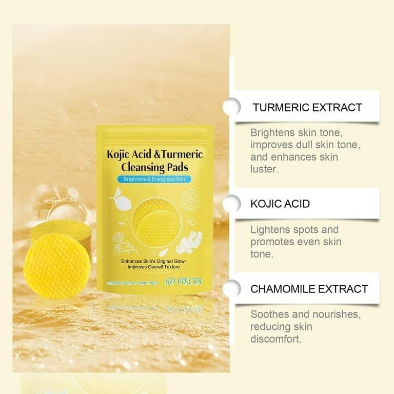 ?Portable? : The portability of these Turmeric Cleansing Pads adds to their convenience and versatility, the compact size and lightweight make them easy to carry in your makeup bag, travel kit or gym bag. ?Suitable for All Skin Types? : Awesome for oily skin as well as dry skin. Turmeric pads gentle and non irritating. advise to use every other day. But can be used every day up to twice a day gently. Safe and suitable for all skin types, they address a multitude of skincare concerns across the body, delivering transformative results you can see and feel. ?Turmeric Cleansing Pads? : Our pads redefine skincare innovation by harnessing the power of nature's best natural ingredients to effectively illuminate and energize your complexion for a naturally radiant glow and appearance. Crafted exclusively with the finest natural, skin-friendly ingredients nature has to offer, these luxuriously soft pads provide a gentle yet firming touch, promoting a smoother, more vibrant skin tone while enhancing overall texture with each use. ?Deep Cleansing ?: The Turmeric Cleansing Pads contain gentle cleansing ingredients that can clean pores deeply and remove excess oil and dirt from the skin's surface, leaving skin fresh and clean. ?Multi-Purpose? : You can use them for various tasks, including cleansing, exfoliation, applying skincare products, makeup removal, applying facial masks, etc. Makeup Turmeric Cleansing Pads are versatile and serve multiple purposes in your beauty and skincare routine. Their soft texture won't scratch or damage your skin.