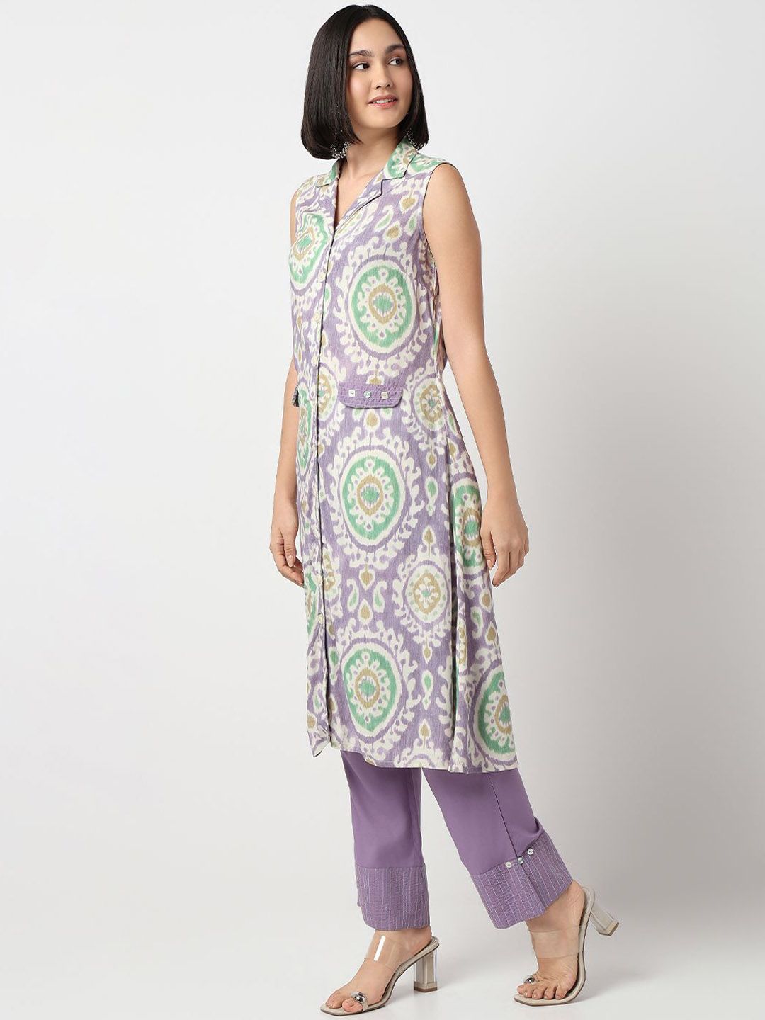 NYLANGAN Ethnic Motifs Printed Shirt Collar Pure Cotton Straight Kurta With Trousers