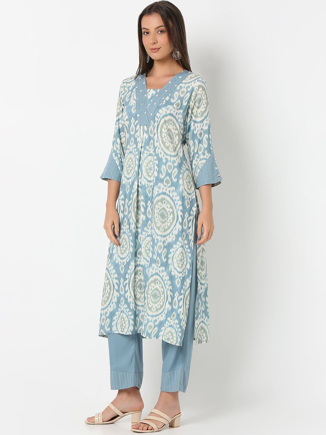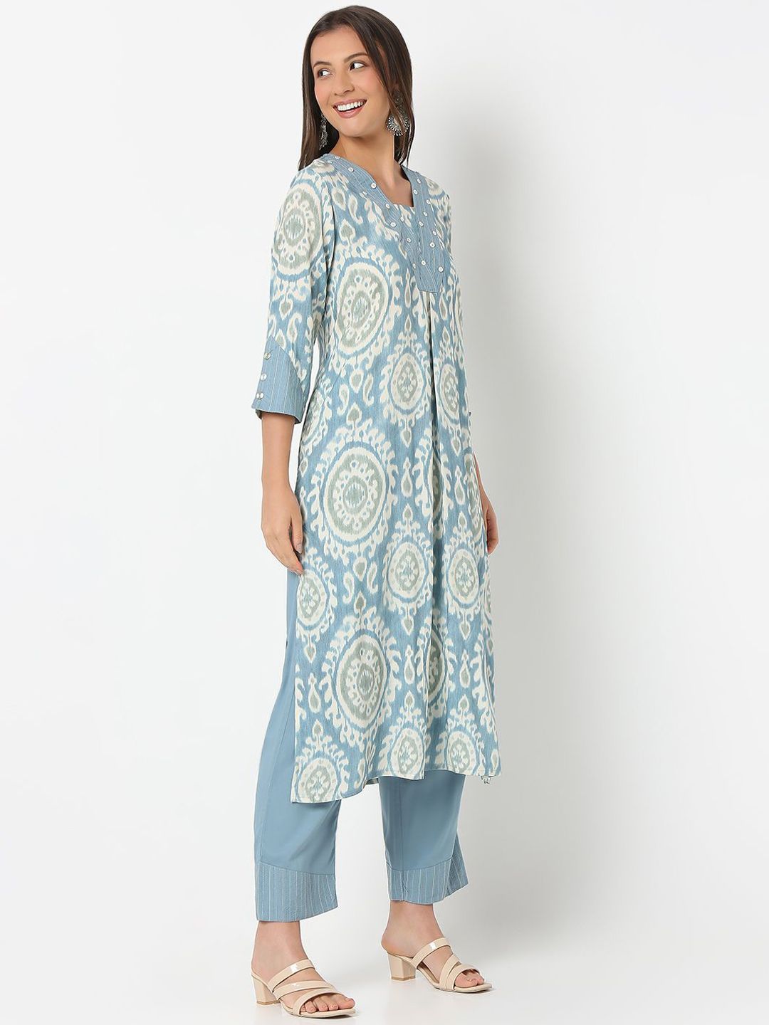 NYLANGAN Women Ethnic Motifs Printed Cotton Kurta with Trousers
