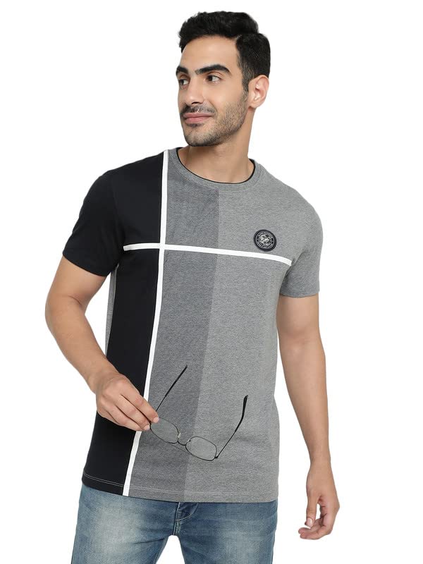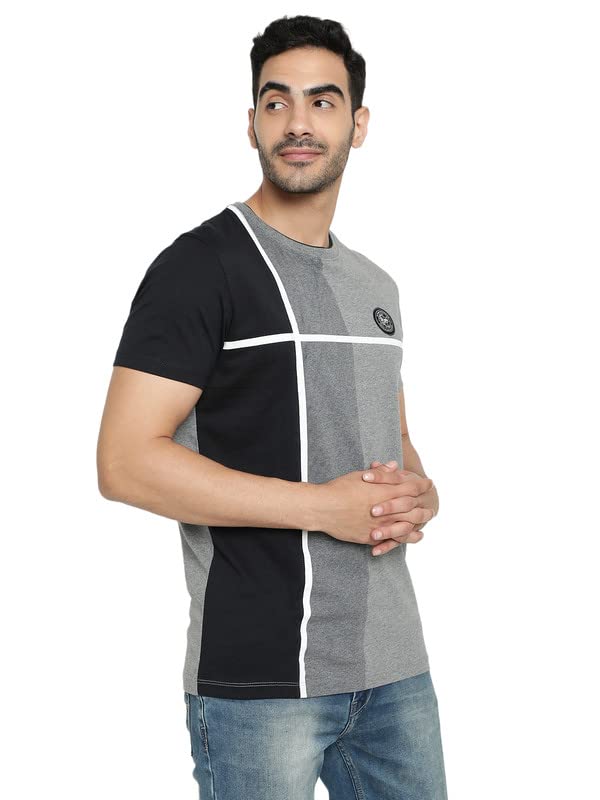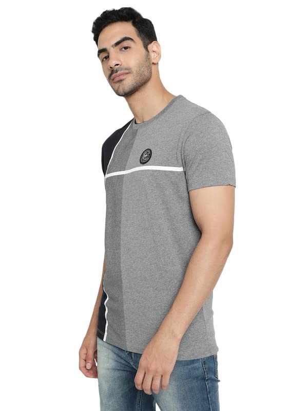 Octave Colourblocked Round Neck Cotton T-Shirt