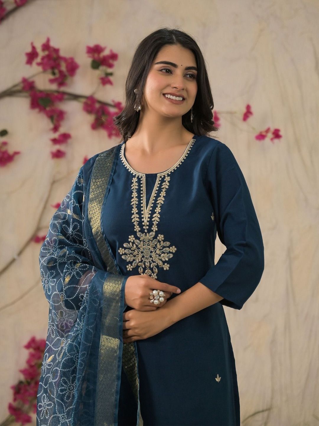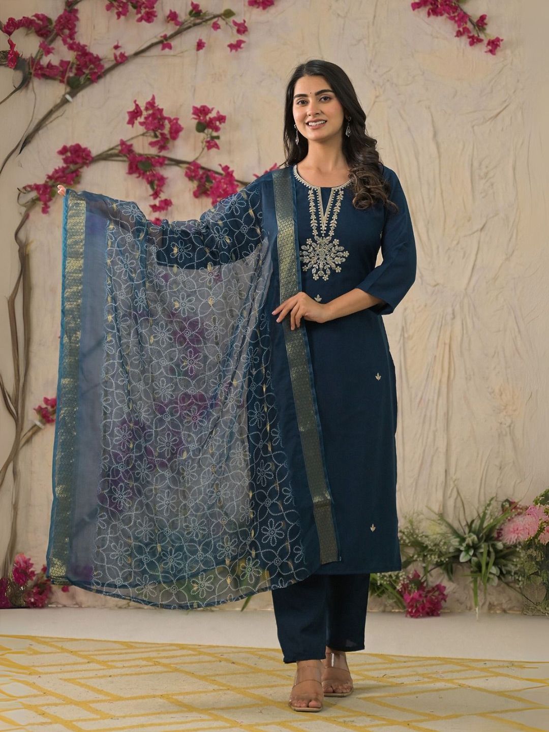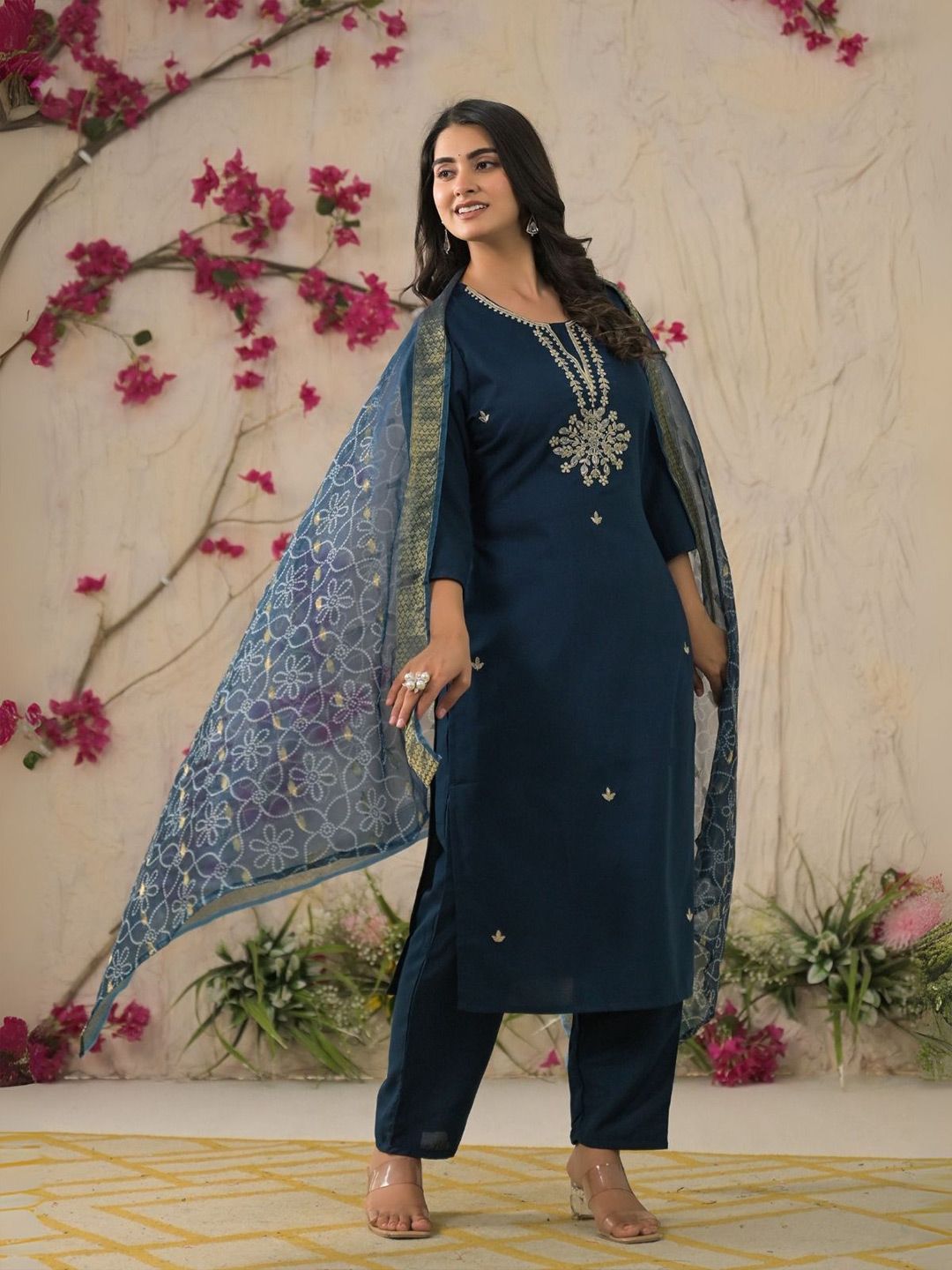 ODETTE Women Ethnic Motifs Embroidered Kurta with Trousers & Dupatta