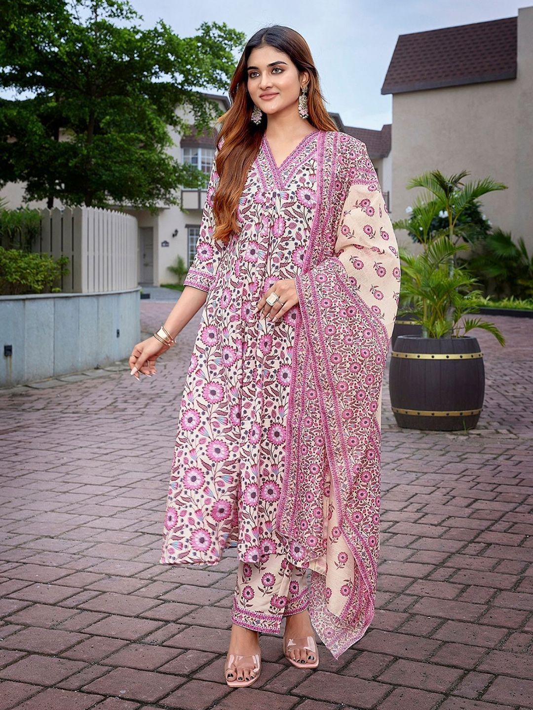 ODETTE Women Viscose Printed Stitched Kurta Set