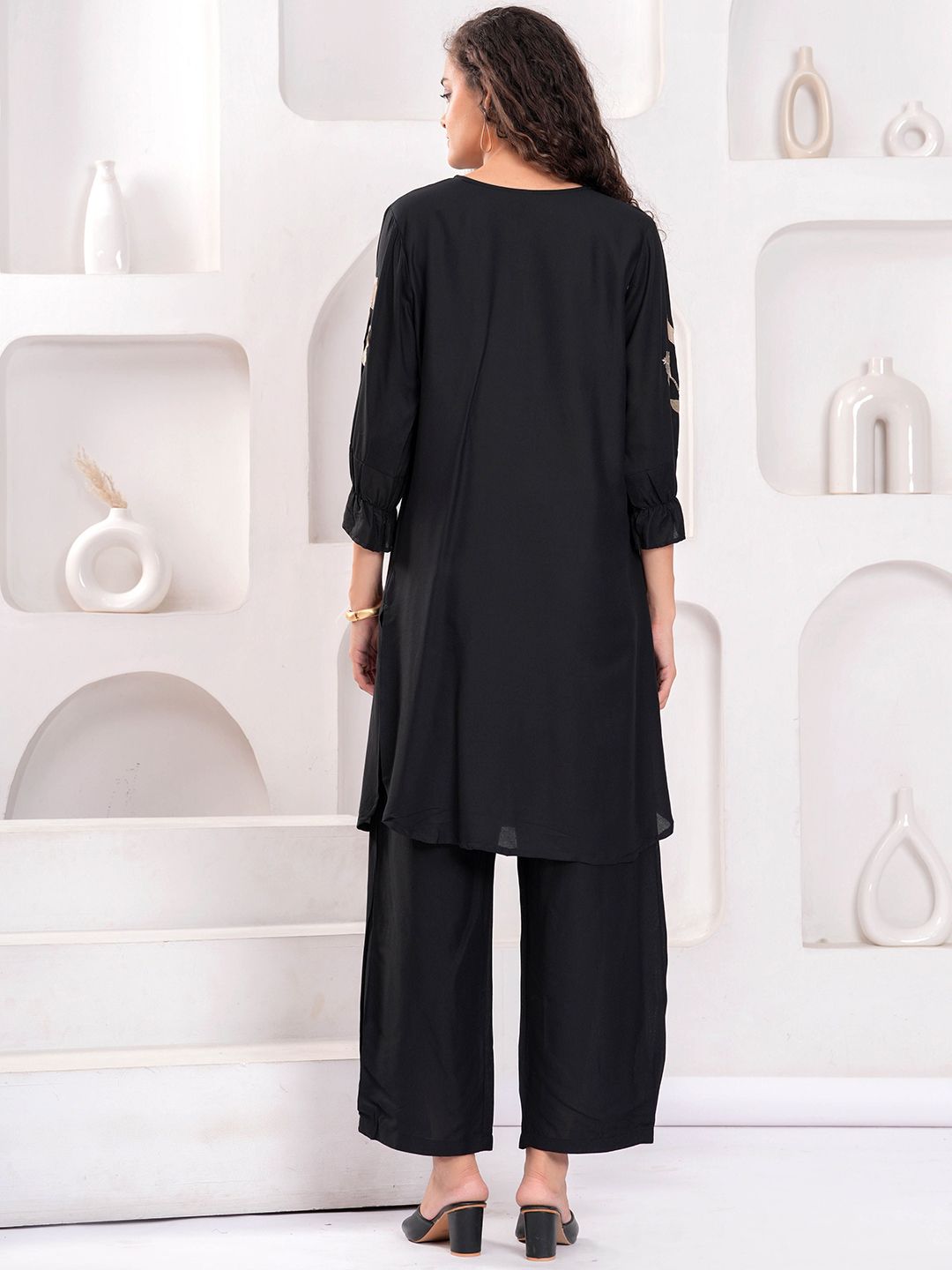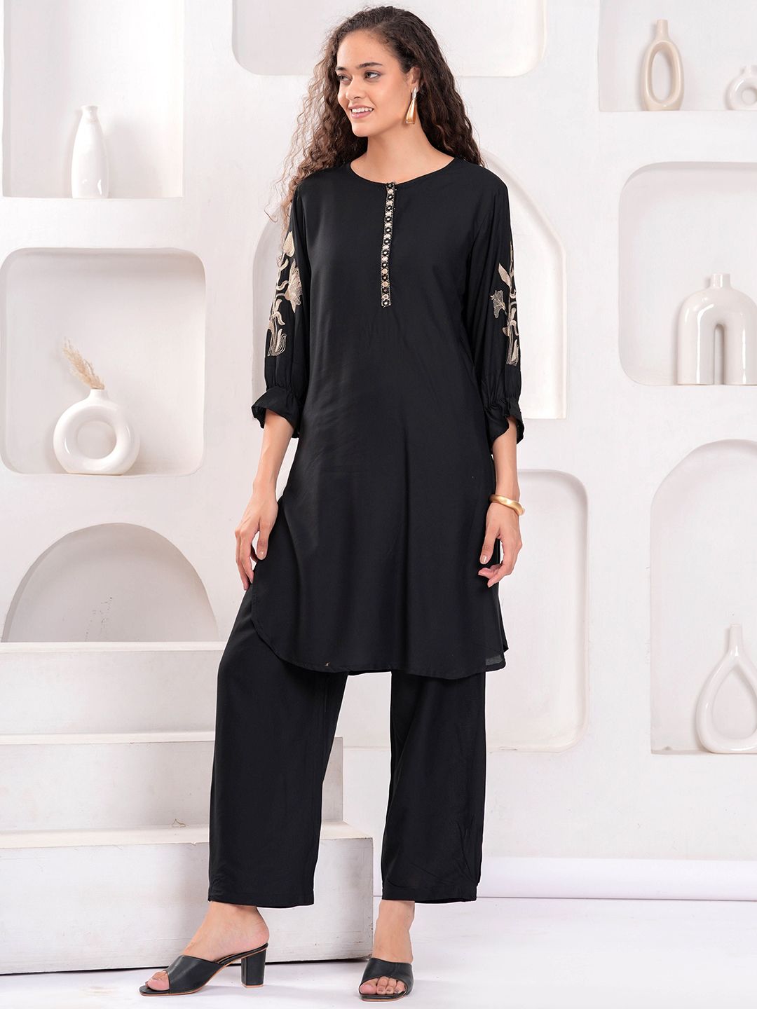 OH MI DIOS Round Neck Thread Work A-Line Kurta With Palazzo