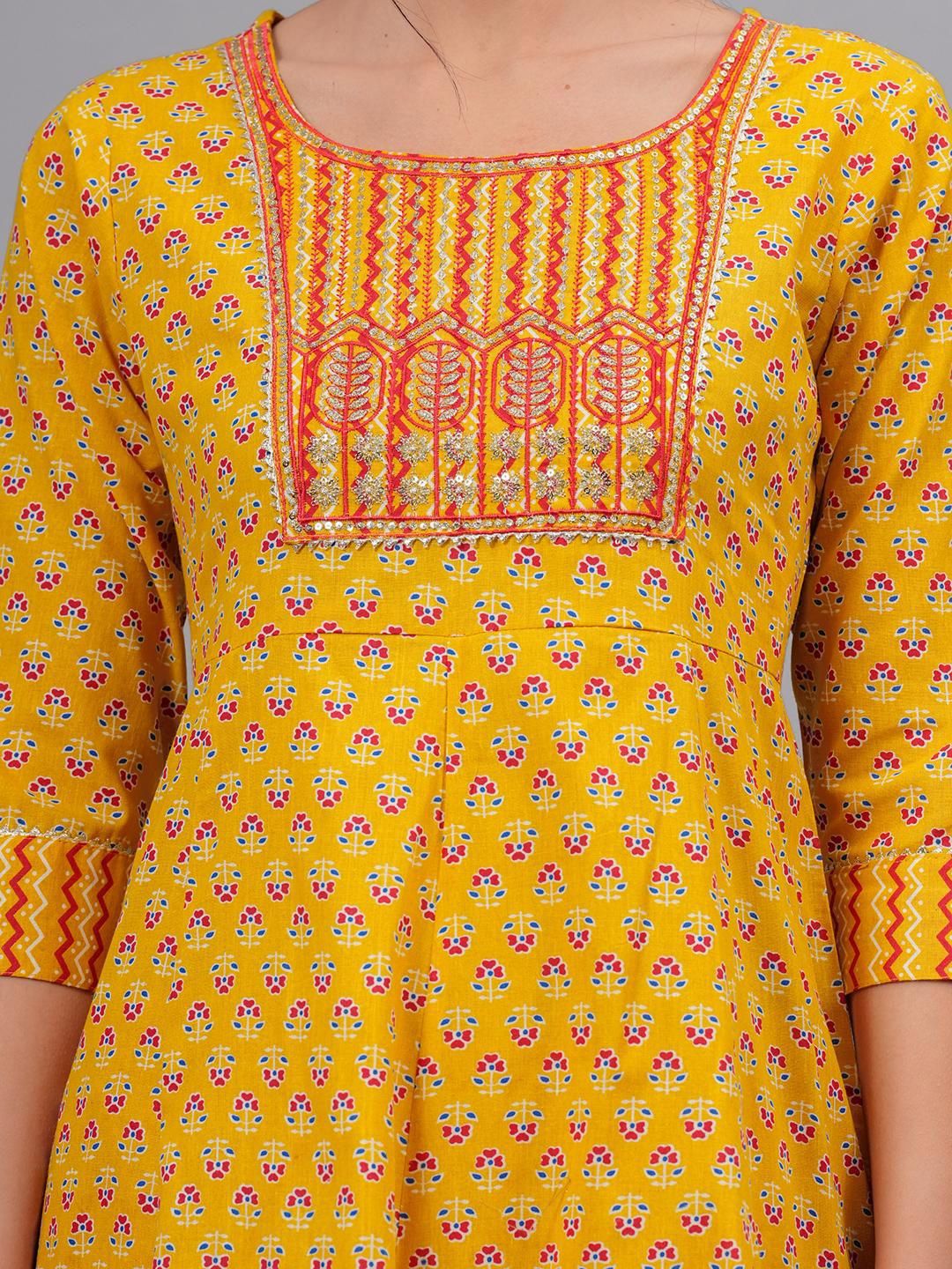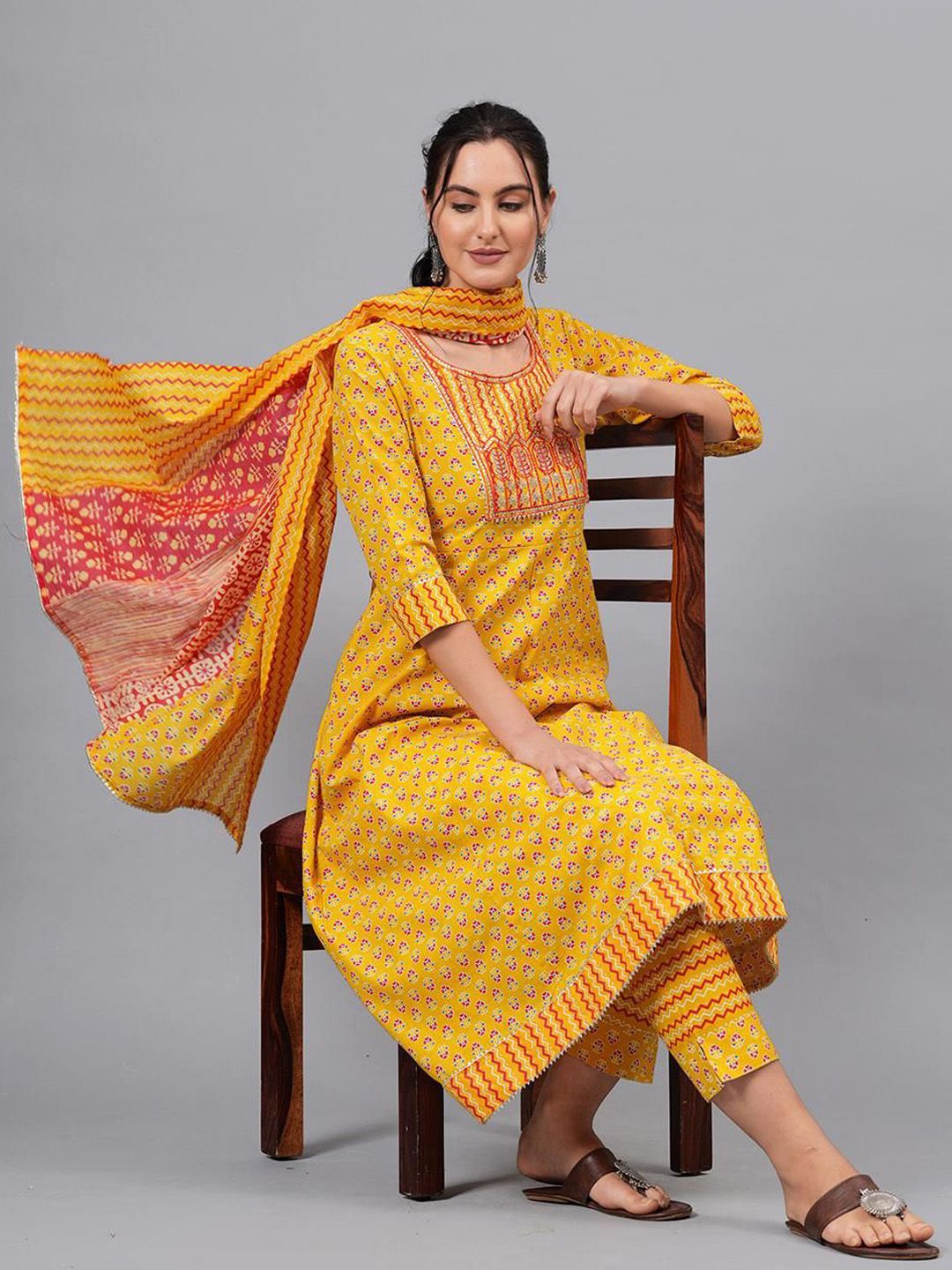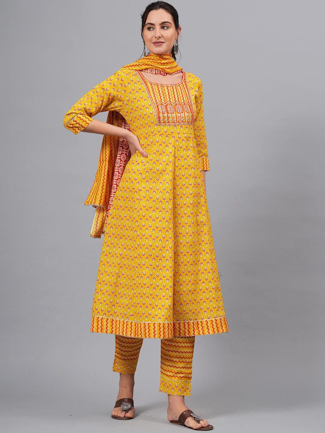 OH MI DIOS Women Floral Yoke Design Regular Pure Cotton Kurta with Trousers & With Dupatta