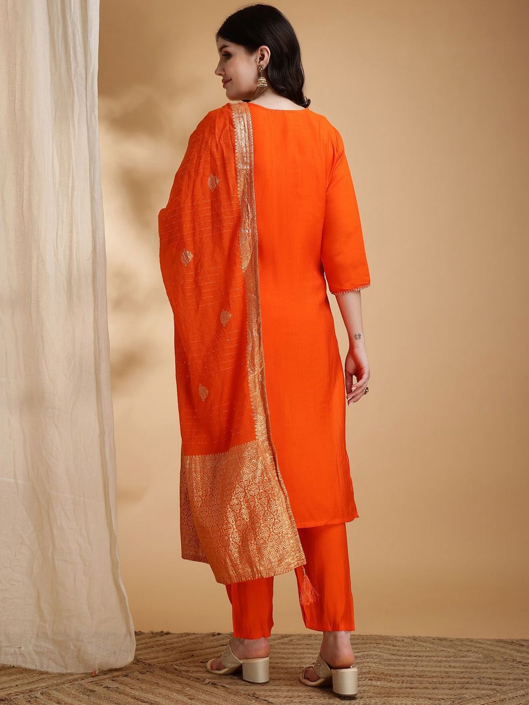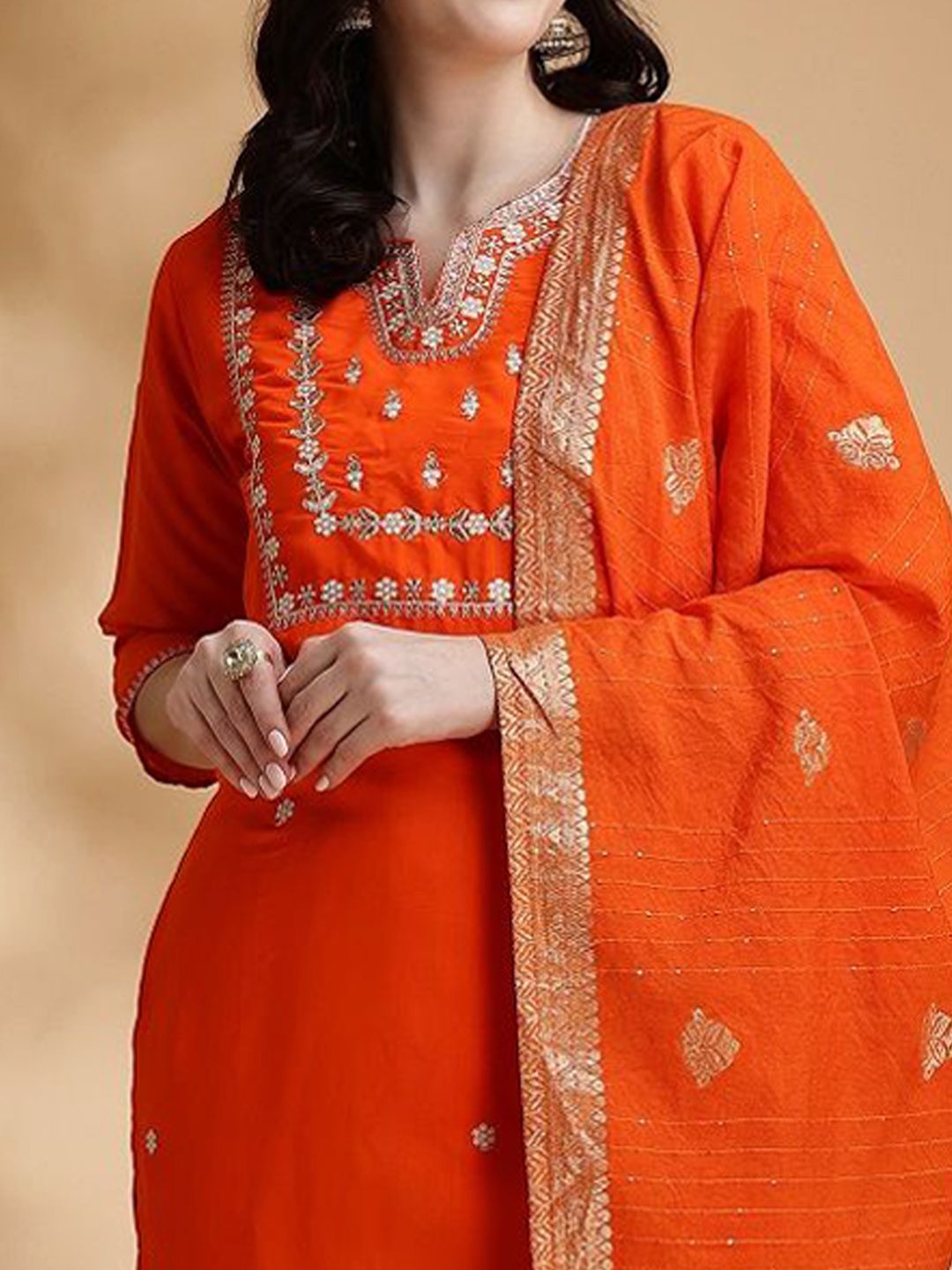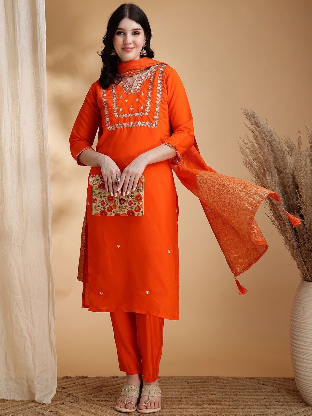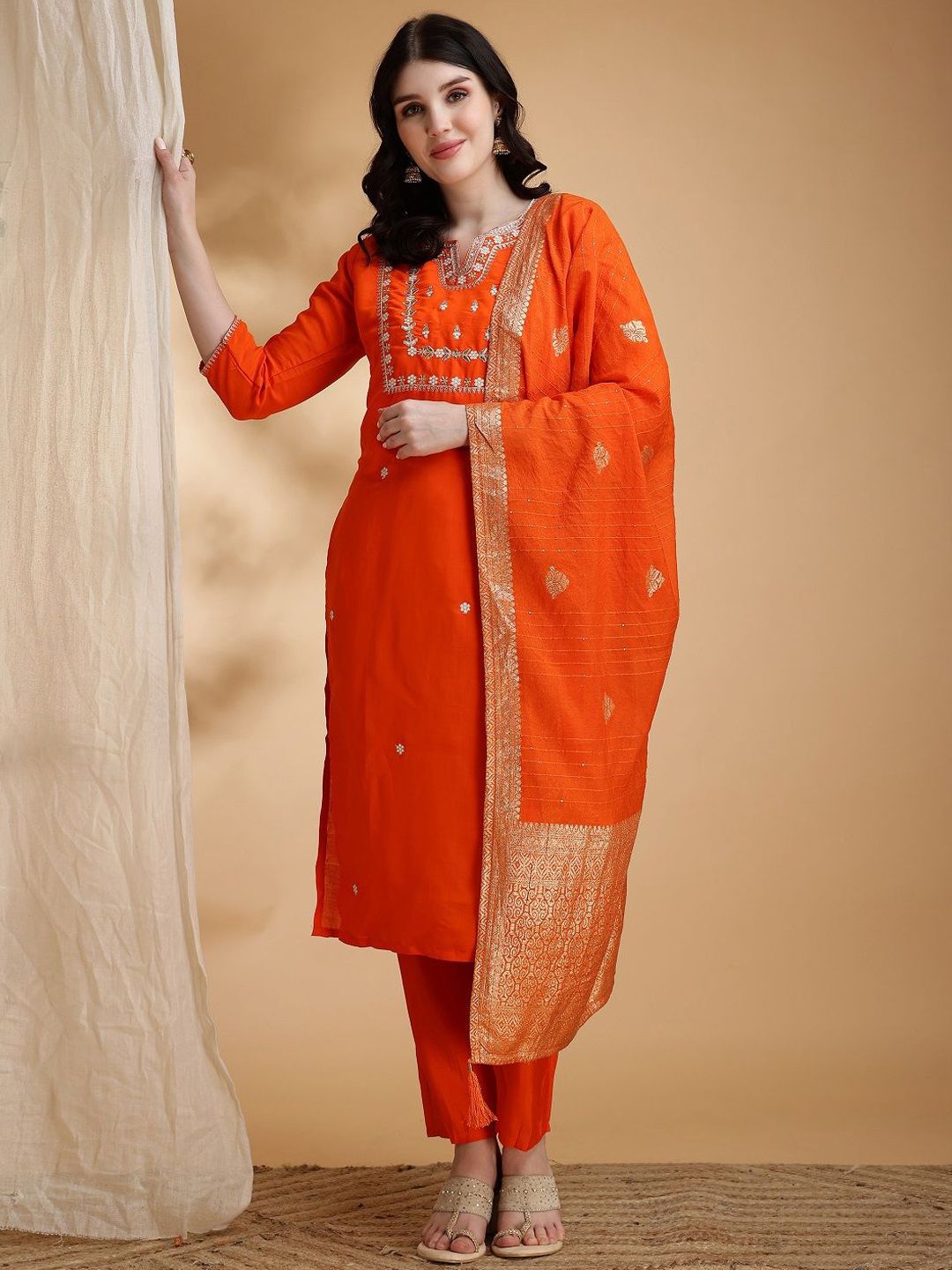 Omicron Fab Women Ethnic Motifs Embroidered Kurta with Pyjama & Dupatta