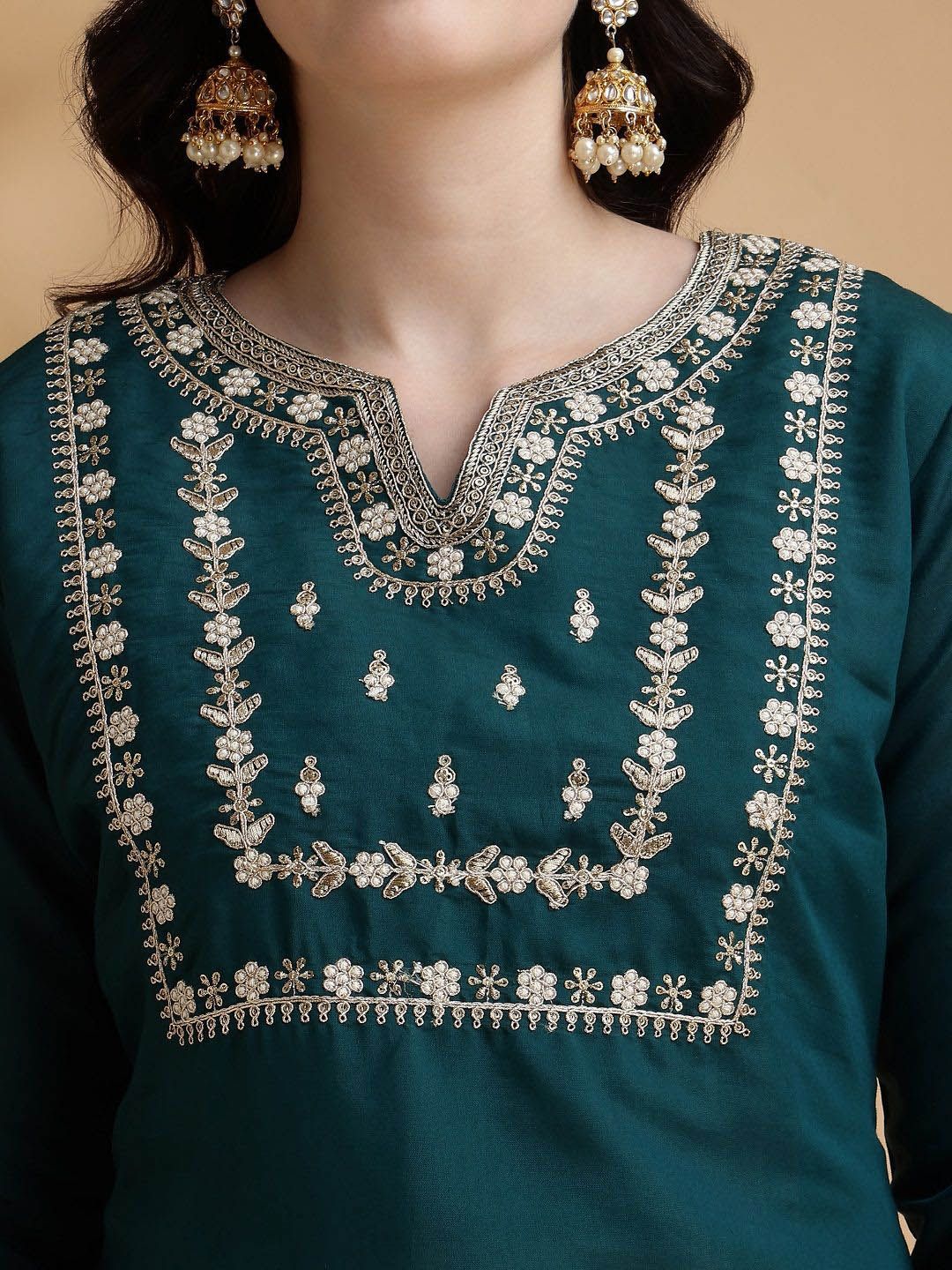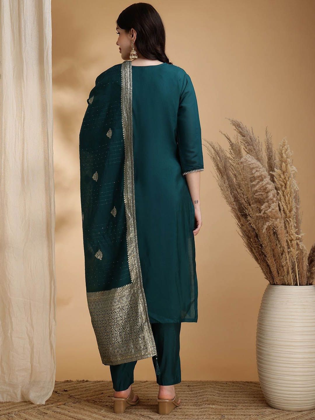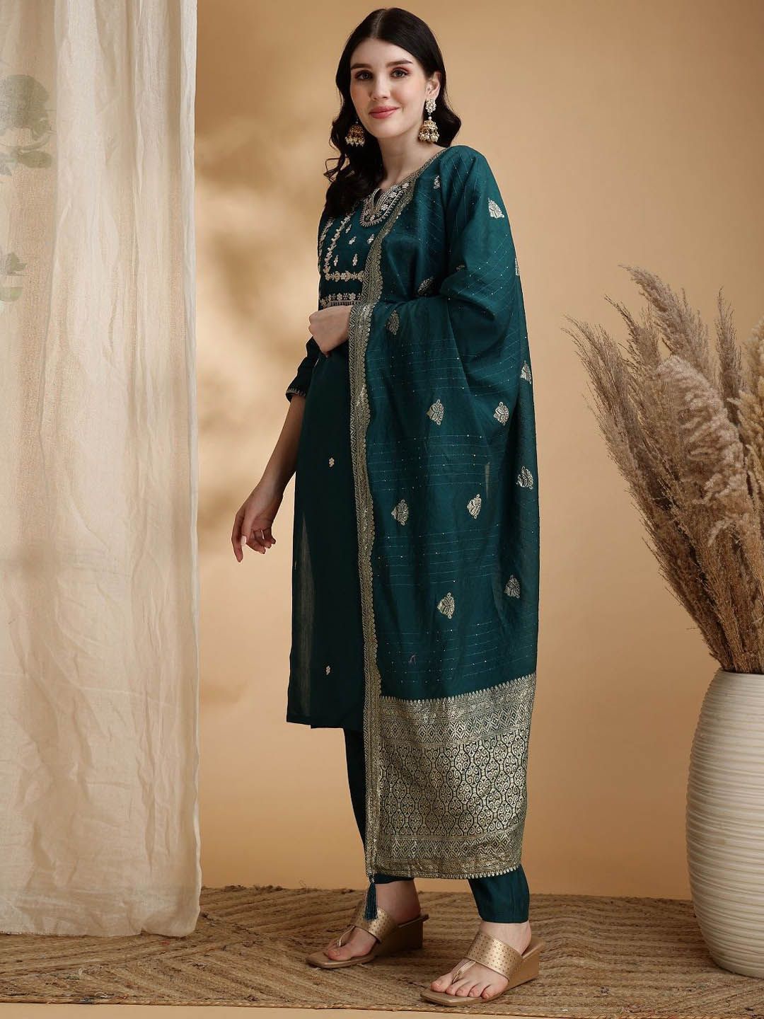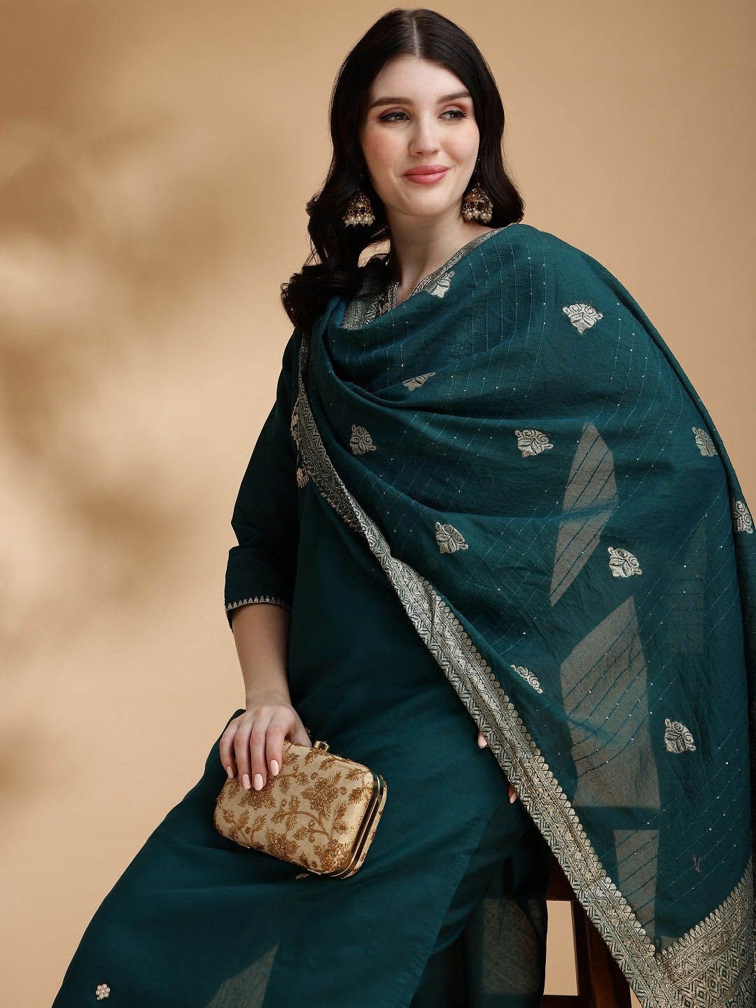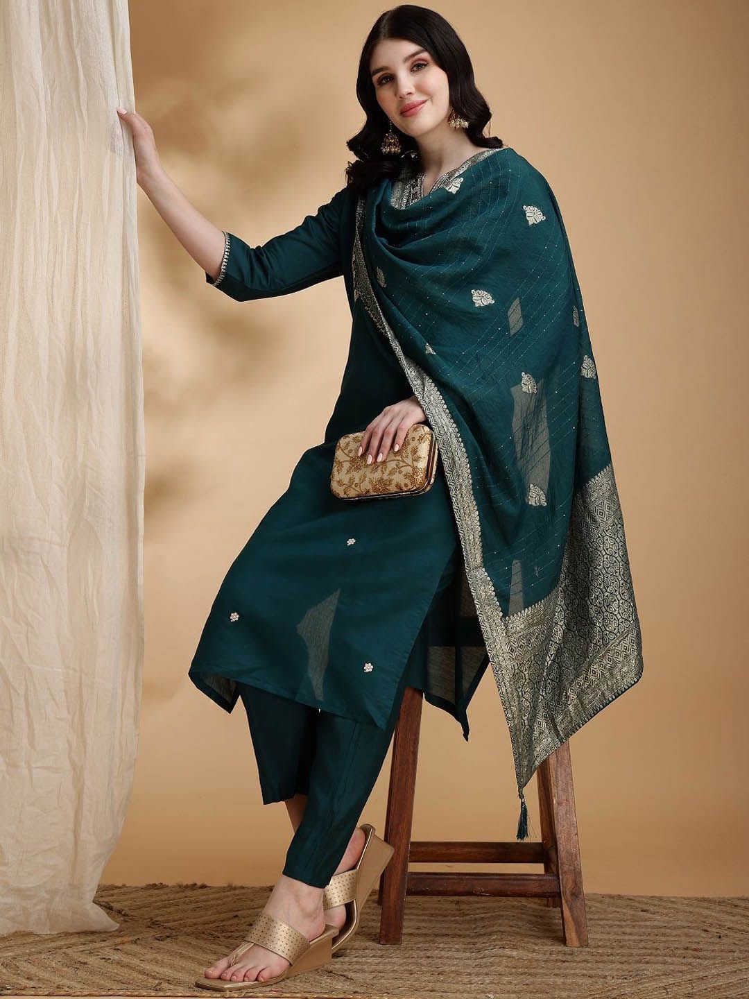 Omicron Fab Women Ethnic Motifs Embroidered Sequinned Kurta Set Dupatta