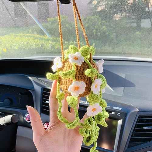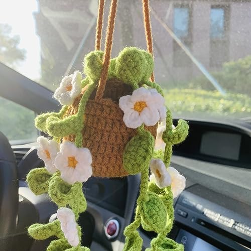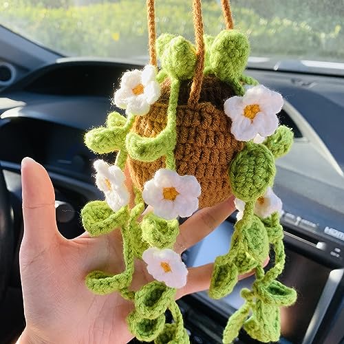 ?Lovely potted design--The green leaves are dotted with small flowers, making people feel full of vitality. When you drive, they will sway and give you a good mood. ?Good Quality --Made with High Quality Soft Cotton Yarn. That Provides the Best Touch and no color difference. ?Size-- When folded, the length of the rope is about 6.69 inches (17 cm). ?Best gift giving-- It will be the Christmas gift, Wedding and Birthday gift, Mother’s Day gift, Father’s Day gift for All Year. you can give it to friend, family, colleague and lover, showing your thanks.Whoever she is,she will be happy once she gets it! ?Easy to install-- You can place the product anywhere. Such as car mirrors, walls, bedside, handbags, etc. You have received the finished product, and you can adjust the height and knot according to your own needs.