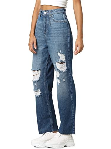 ONLY Women Mom Fit High-Rise Low Distress Light Fade Pure Cotton Jeans