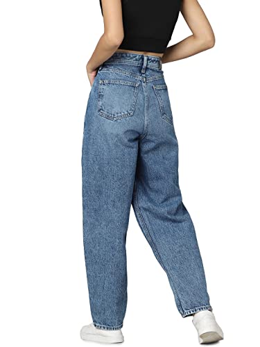 ONLY Women Relaxed Fit High-Rise Heavy Fade Cotton Stretchable Jeans