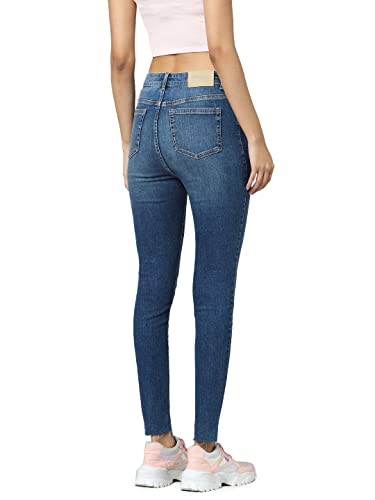 ONLY Women Skinny Fit High-Rise Low Distress Light Fade Cotton Jeans
