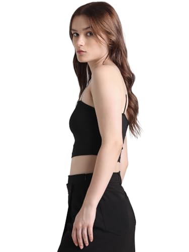 ONLY Women Solid Polyester Crop Length Black Top