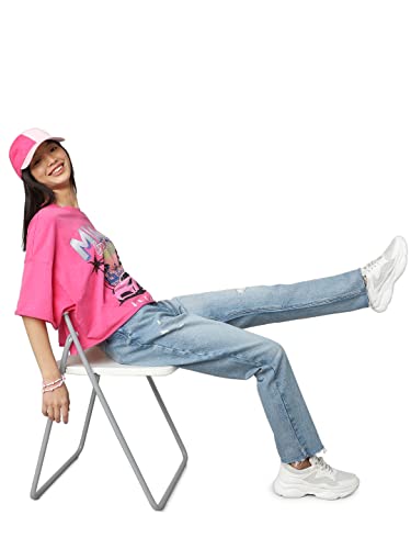 ONLY Women Straight Fit High-Rise Low Distress Raw Edge Cotton Stretchable Jeans