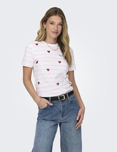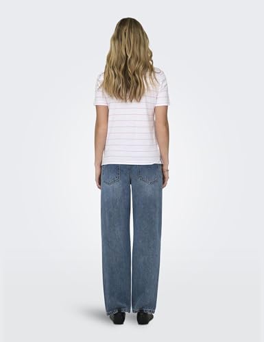 ONLY Women Striped Cotton White T-Shirt