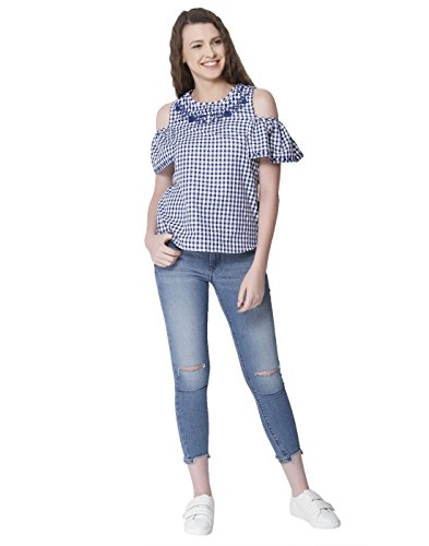 Only Women's Checkered Regular fit Top (2006124003_Blue Depths 36)