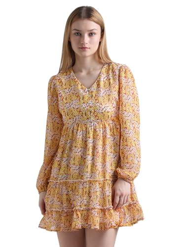 ONLY Women's Floral Printed Puff Sleeves V-Neck Tiered Mini Fit & Flare Dress