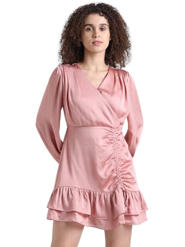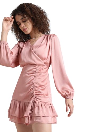 ONLY Women's Puff Sleeves Chiffon Wrap Dress