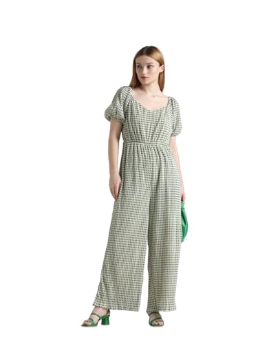 ONLY Womens Puff Sleeves Printed Jumpsuit with Sweetheart Neckline