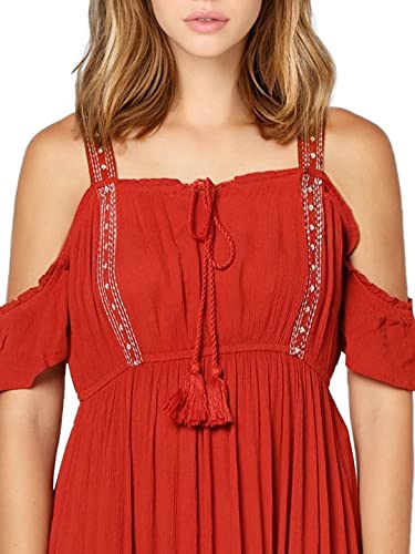 ONLY Women's Red Gathered and Tiered Cold-Shoulder Midi Dress