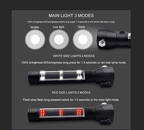 ORIGINAL MART Torch Light High Power Long Distance Rechargeable 7 Modes Emergency Tool with Window Breaker Seat Belt Cutter Compass for Camping Hiking (Black)