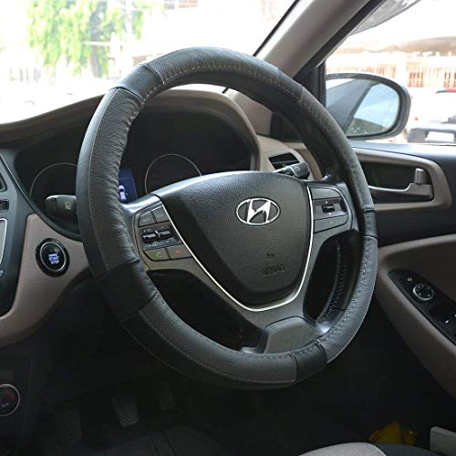 Oshotto SC-001 Leather Car Steering Cover Black and Grey Colour Compatible with Nissan Kicks