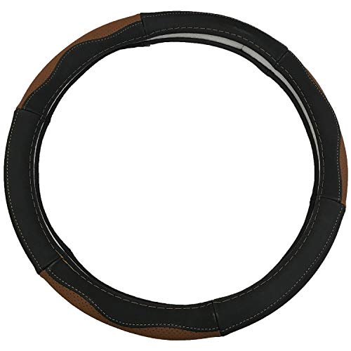 Oshotto SC-002 Leather Car Steering Cover Compatible with Honda City (Black Tan)