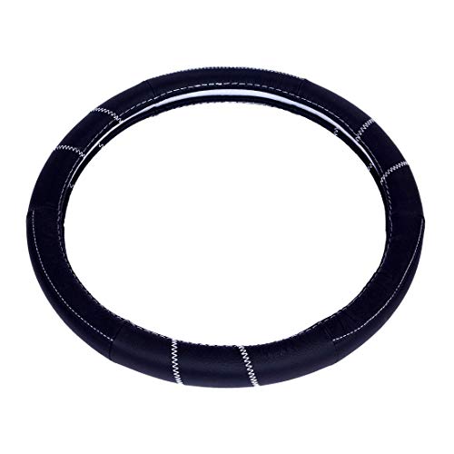 Oshotto SC-006 Genuine Leather Car Steering Cover Compatible with WagonR 2019-2025 (Black)