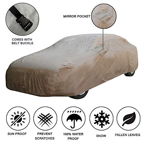 Oshotto/Recaro Brown 100% Waterproof Car Body Cover with Mirror Pockets Compatible with Mercedes Benz C-Class (2010-2016)