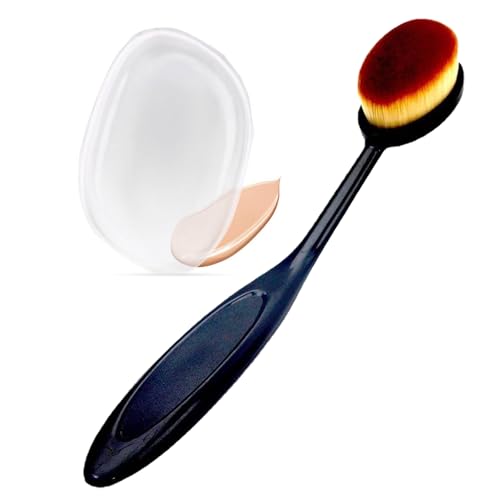 Oval Head Makeup Brush, Ultra-Soft Foundation and Contour Brush for Seamless Blending with 1 Silicon Foundatoin Brush