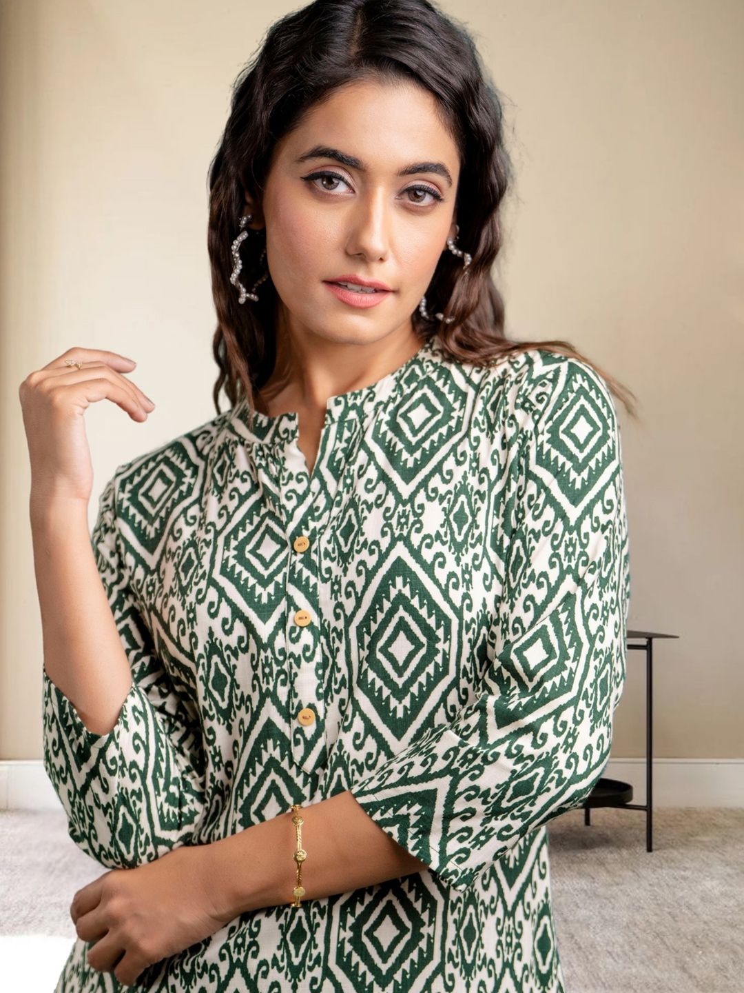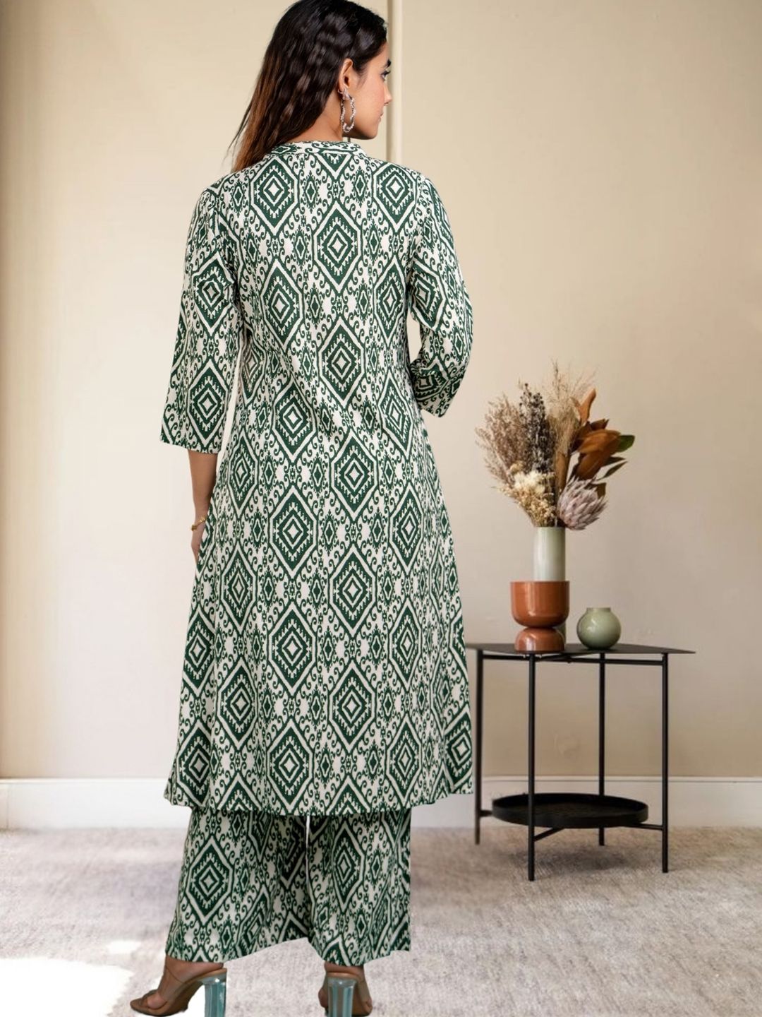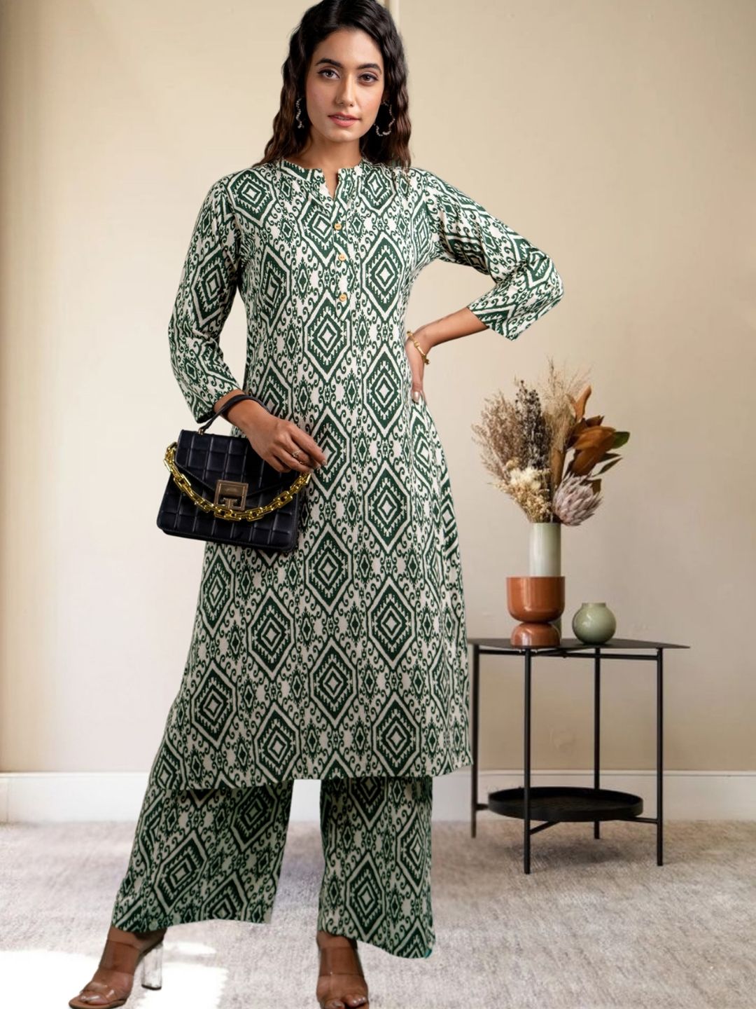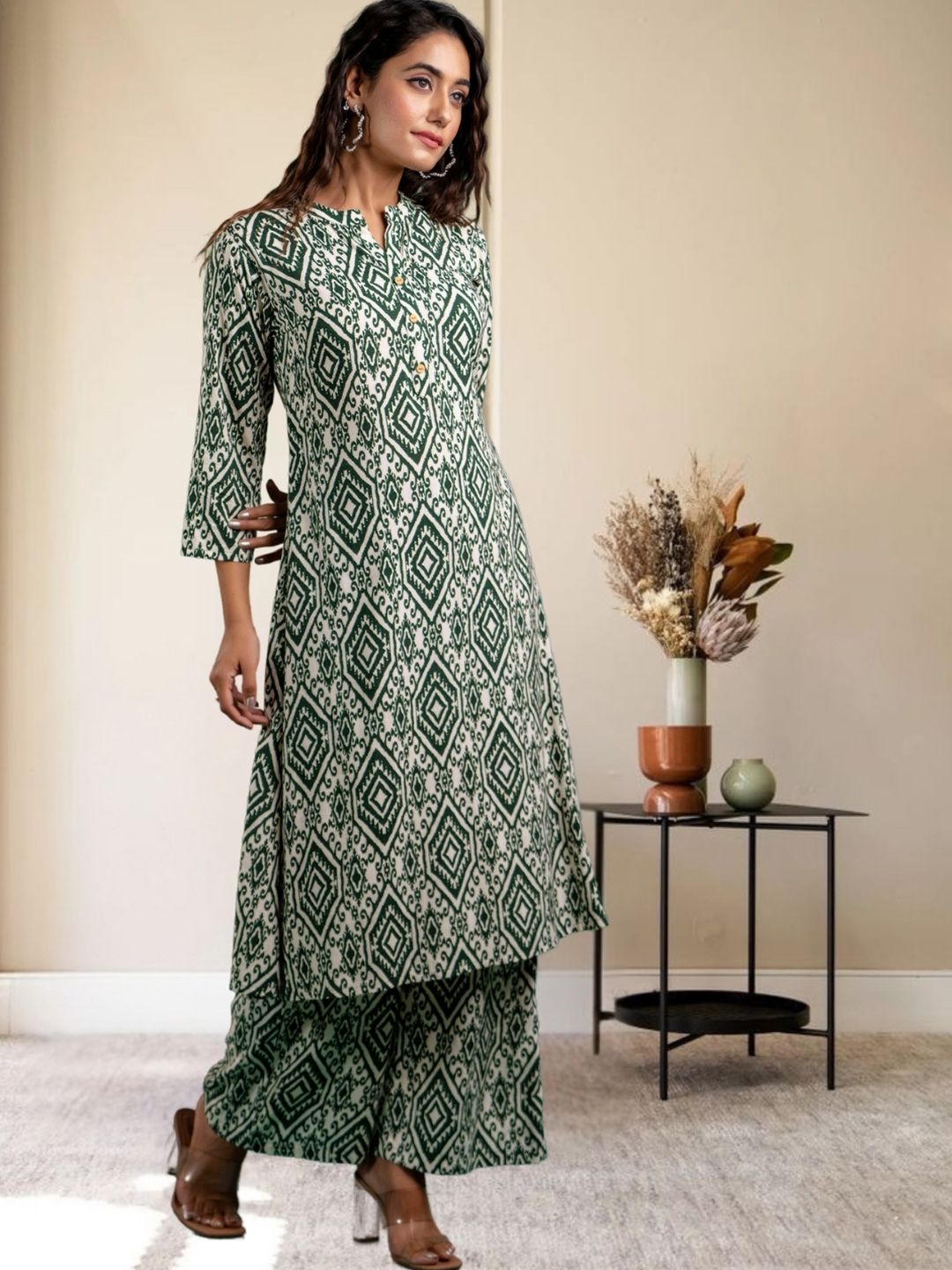 Buy this stylish OZIA Ethnic Motifs Printed Mandarin Collar Pure Cotton Straight Kurta With Palazzos at Marincart Nepal. This product offers great quality and value. Perfect for those looking for the latest trends in fashion. Get yours now at unbeatable prices.