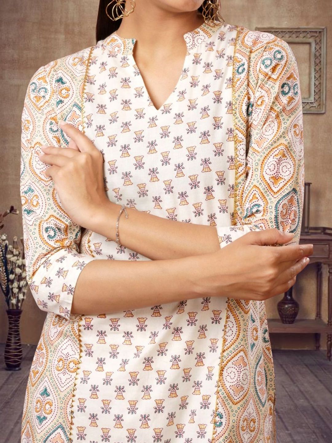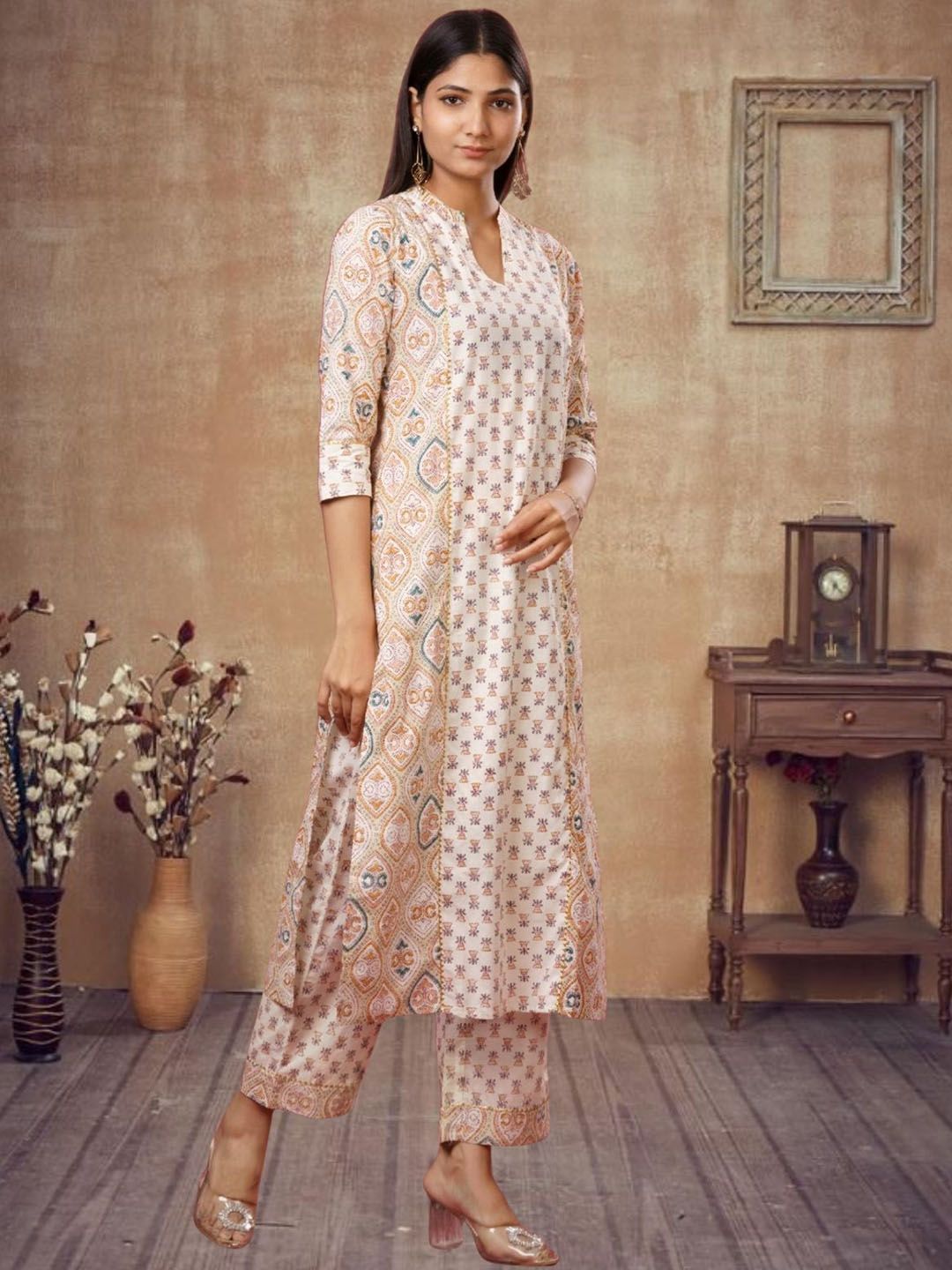 Buy this stylish OZIA Ethnic Motifs Printed Mandarin Collar Straight Gotta Patti Kurta With Trousers at Marincart Nepal. This product offers great quality and value. Perfect for those looking for the latest trends in fashion. Get yours now at unbeatable prices.