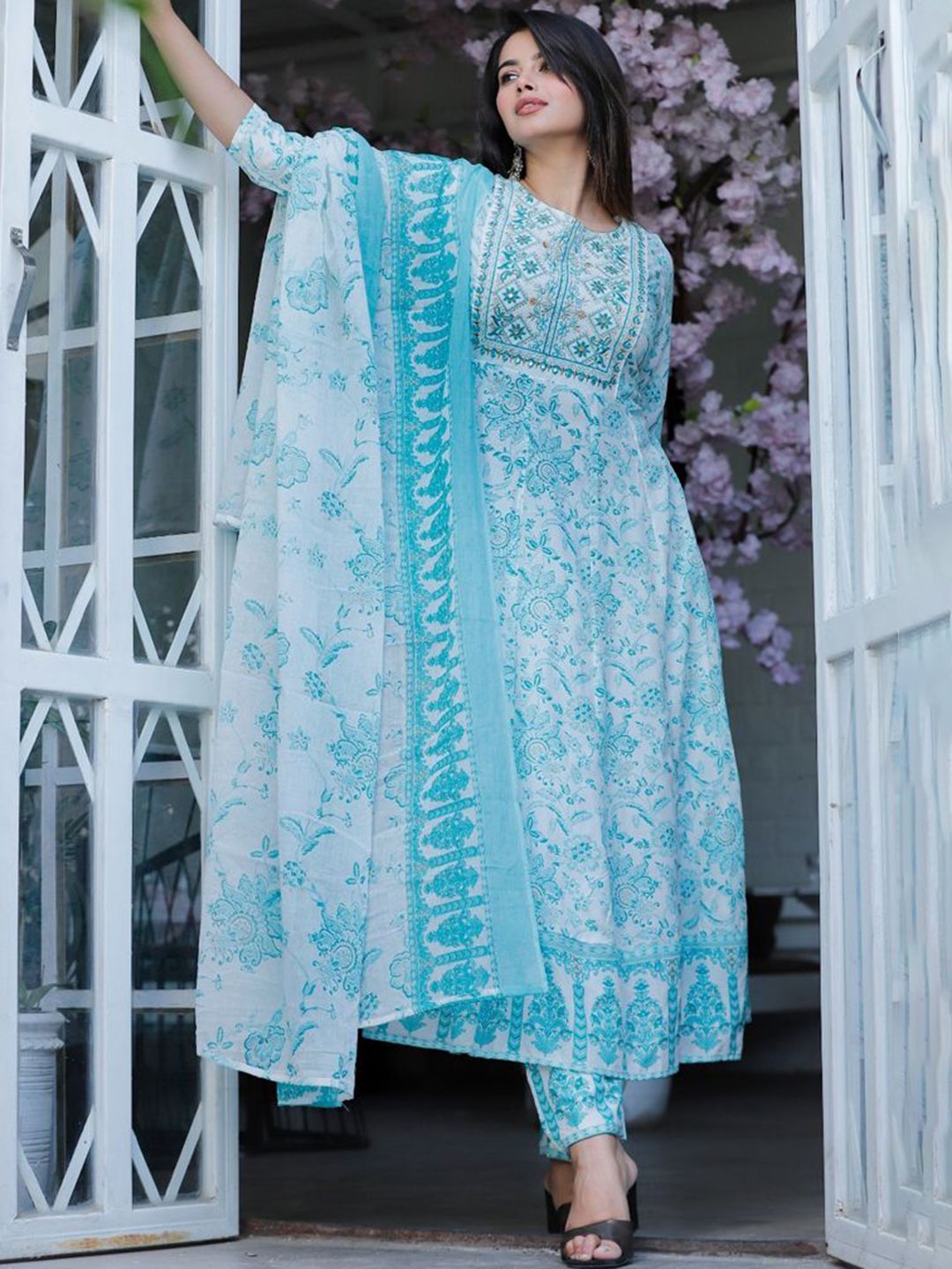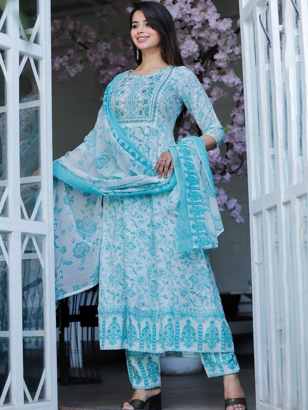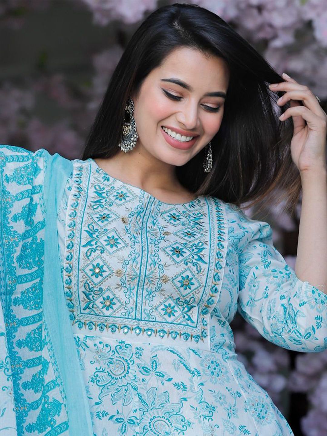 Buy this stylish PAARDINI Floral Printed Sequinned Round Neck A-Line Kurta With Trousers And Dupatta at Marincart Nepal. This product offers great quality and value. Perfect for those looking for the latest trends in fashion. Get yours now at unbeatable prices.