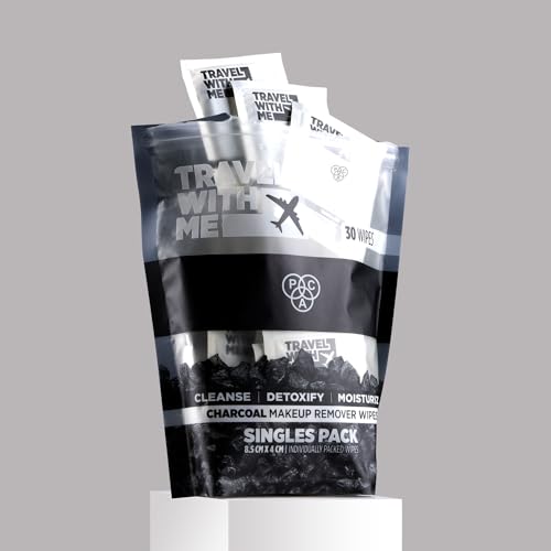 PAC Travel With Me Charcoal Wet Wipes for Face with Charcoal powder, Vitamin E & Glycerin | Cleansing and Hydrating Facial Wipes | Moisturizing Makeup Remover for Oily & Combination Skin - Single