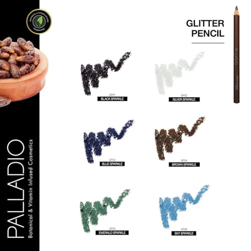 Palladio Beauty GLITTER PENCILS 0.039 oz, Black sparkle, 1.106 g