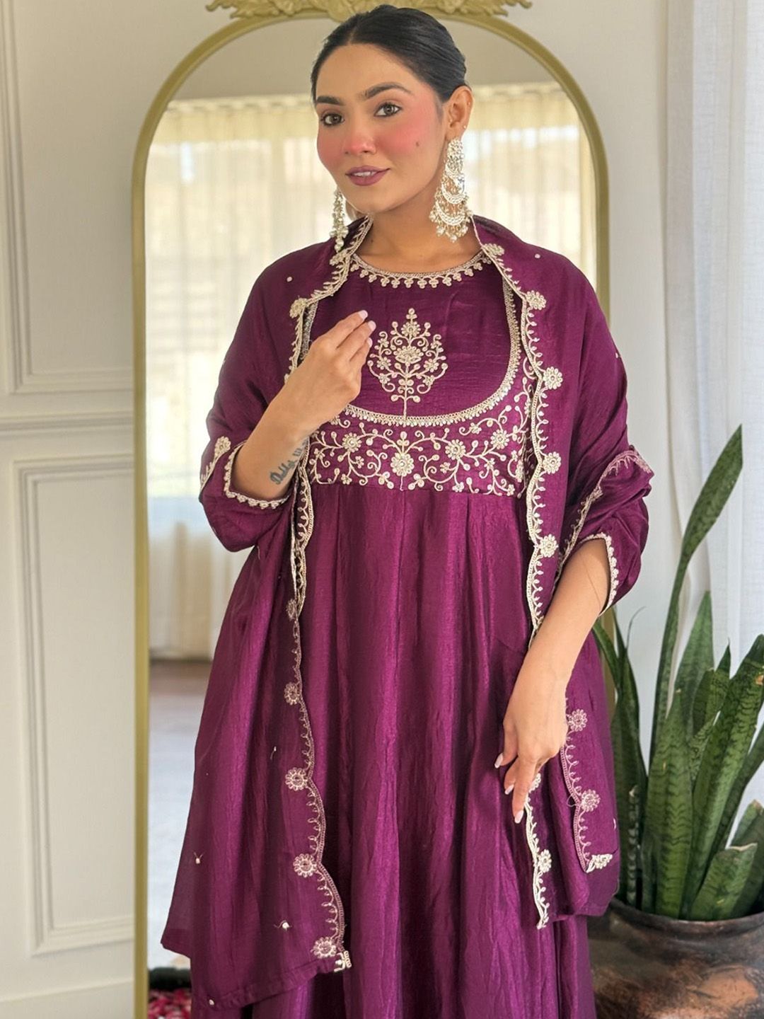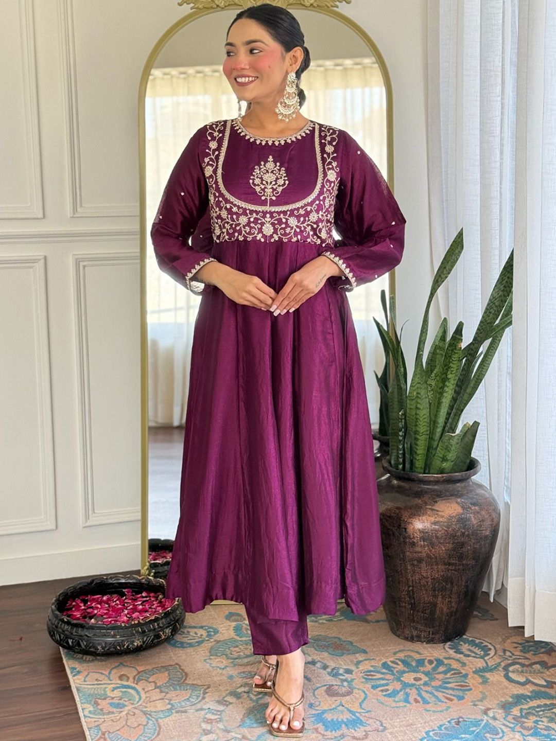 Buy this stylish Pantos Floral Embroidered Chanderi Silk Thread Work Kurta With Trousers And Dupatta at Marincart Nepal. This product offers great quality and value. Perfect for those looking for the latest trends in fashion. Get yours now at unbeatable prices.