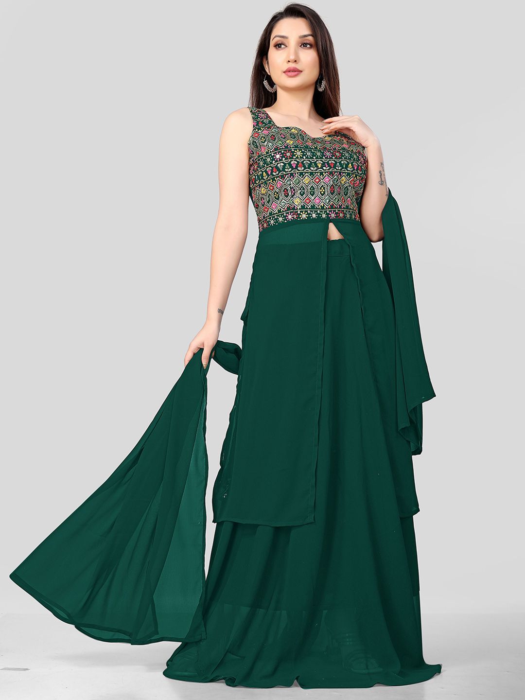 Pantos Women Floral Embroidered Kurta with Skirt & Dupatta
