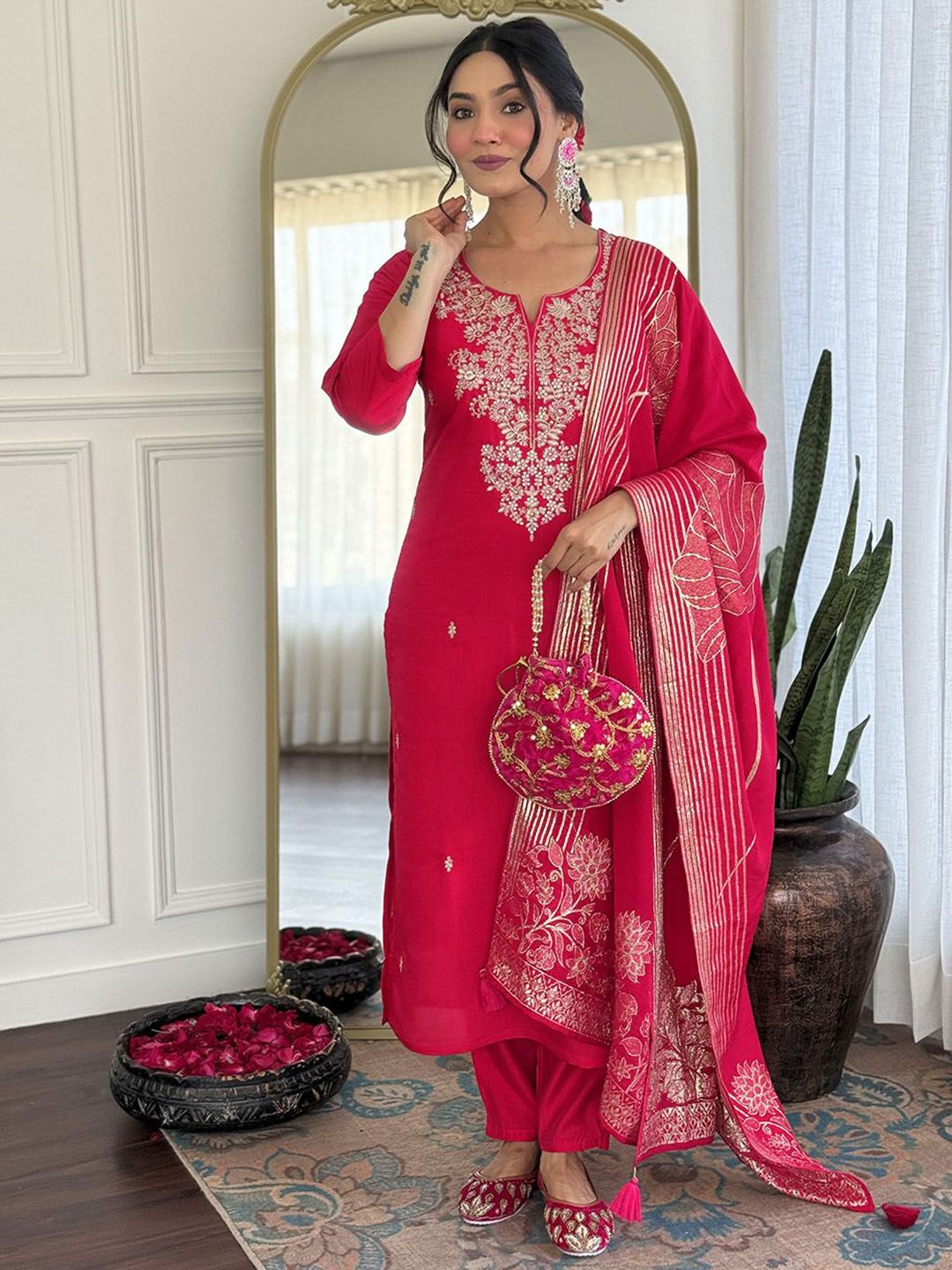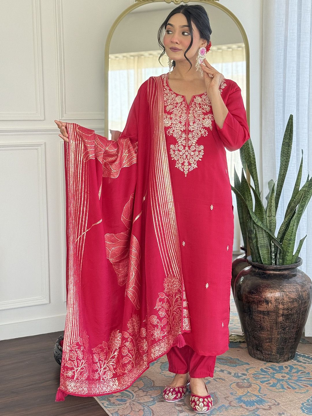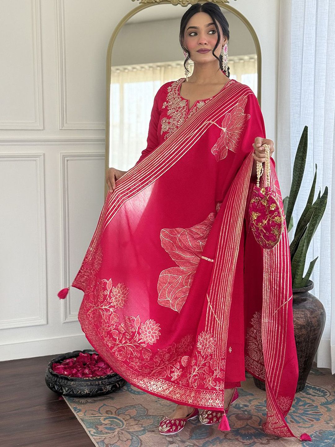 PARNAVI Women Floral Embroidered Kurta with Trousers & Dupatta