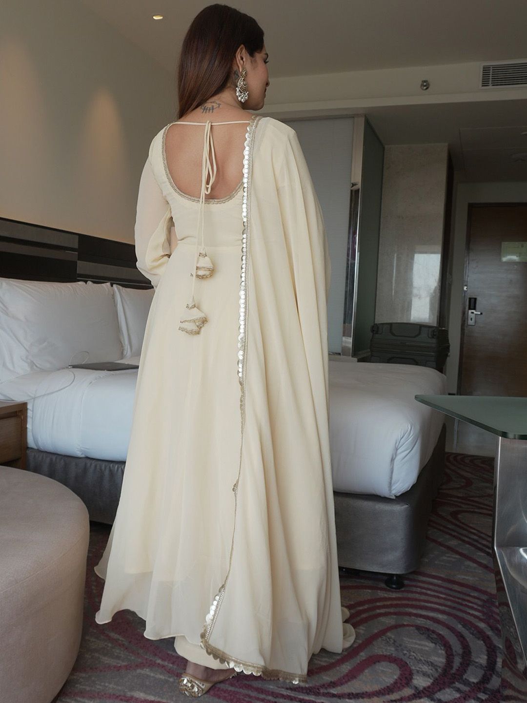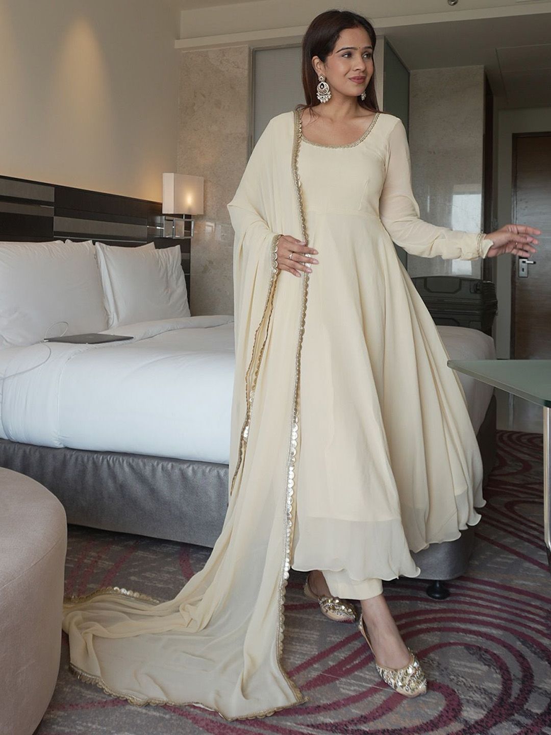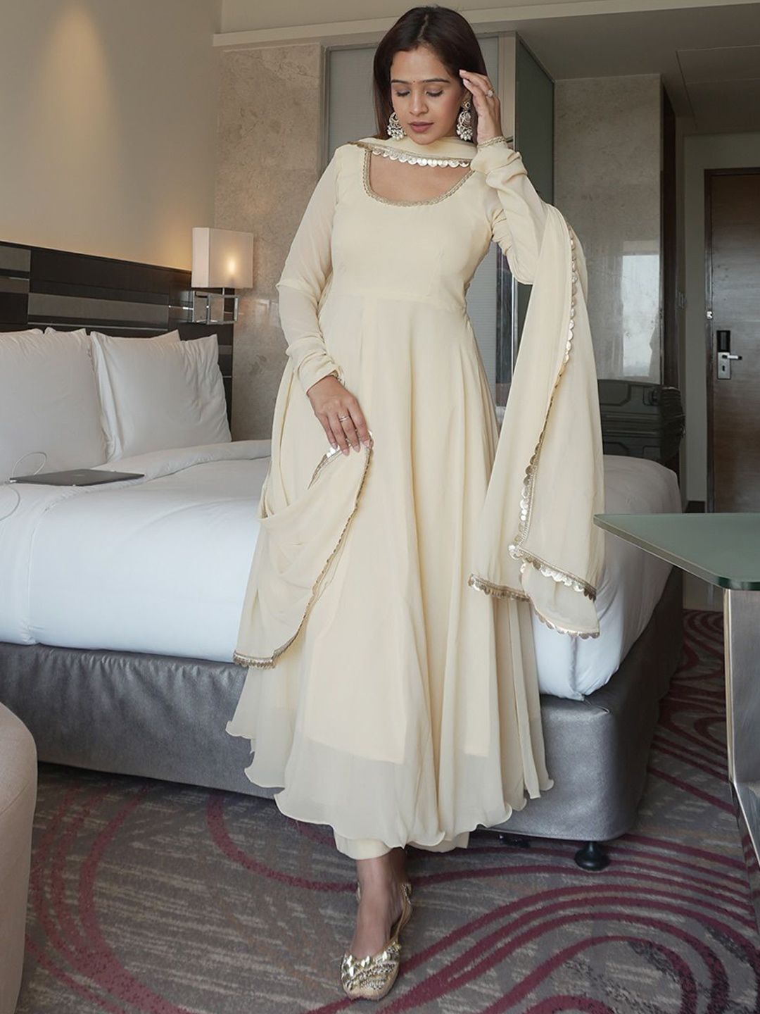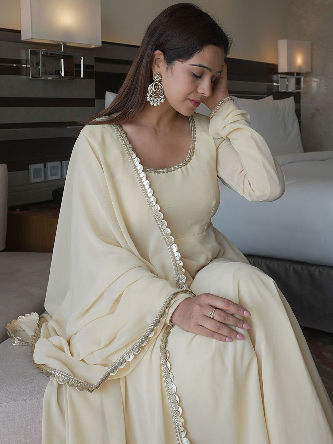 PARNAVI Women Solid Anarkali Kurti with Trousers & Dupatta