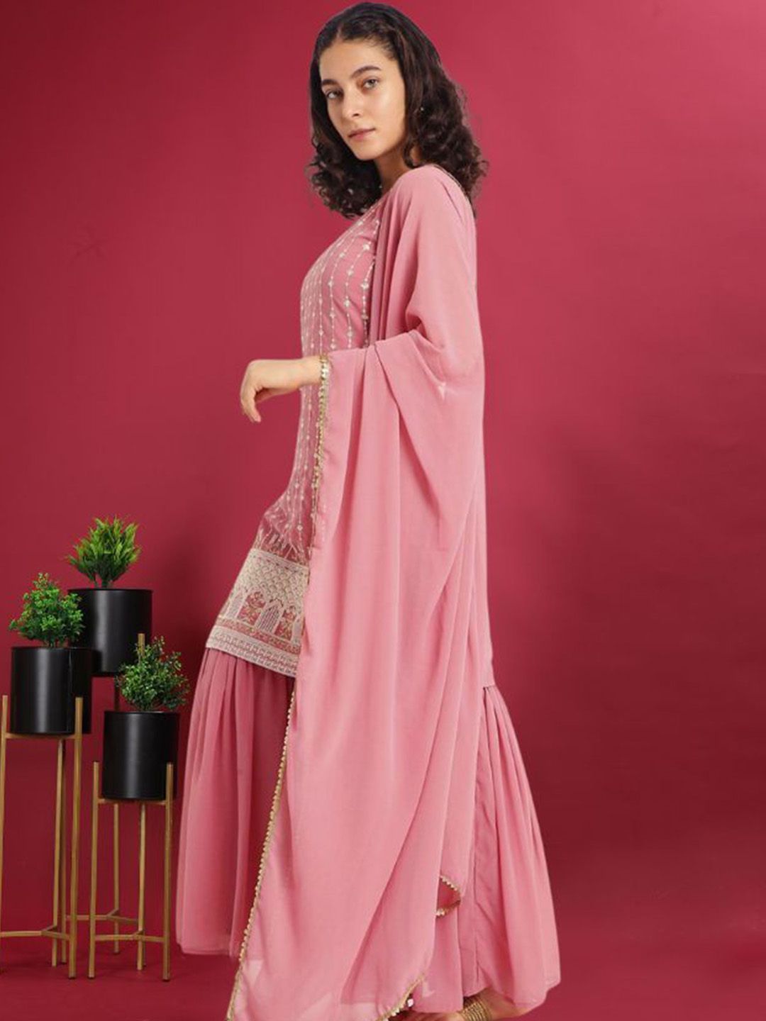 PARROT CREATION Women Ethnic Motifs Embroidered Kurta with Sharara & Dupatta